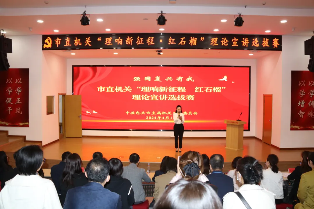 为深入学习贯彻习近平新时代中国特色社会主义思想,推动党的创新理论入脑入心,4月18日,市直机关工委举办“理响新征程·红石榴”理论宣讲选拔赛。17组参赛选手紧紧围绕习近平新时代中国特色社会主义思想、党的二十大精神、习近平总书记考察内蒙古的重要讲话精神、习近平总书记交给内蒙古的五大任务、全方位建设“模范自治区”、推动内蒙古高质量发展,奋力书写中国式现代化新篇章等方面重点内容开展宣讲。
