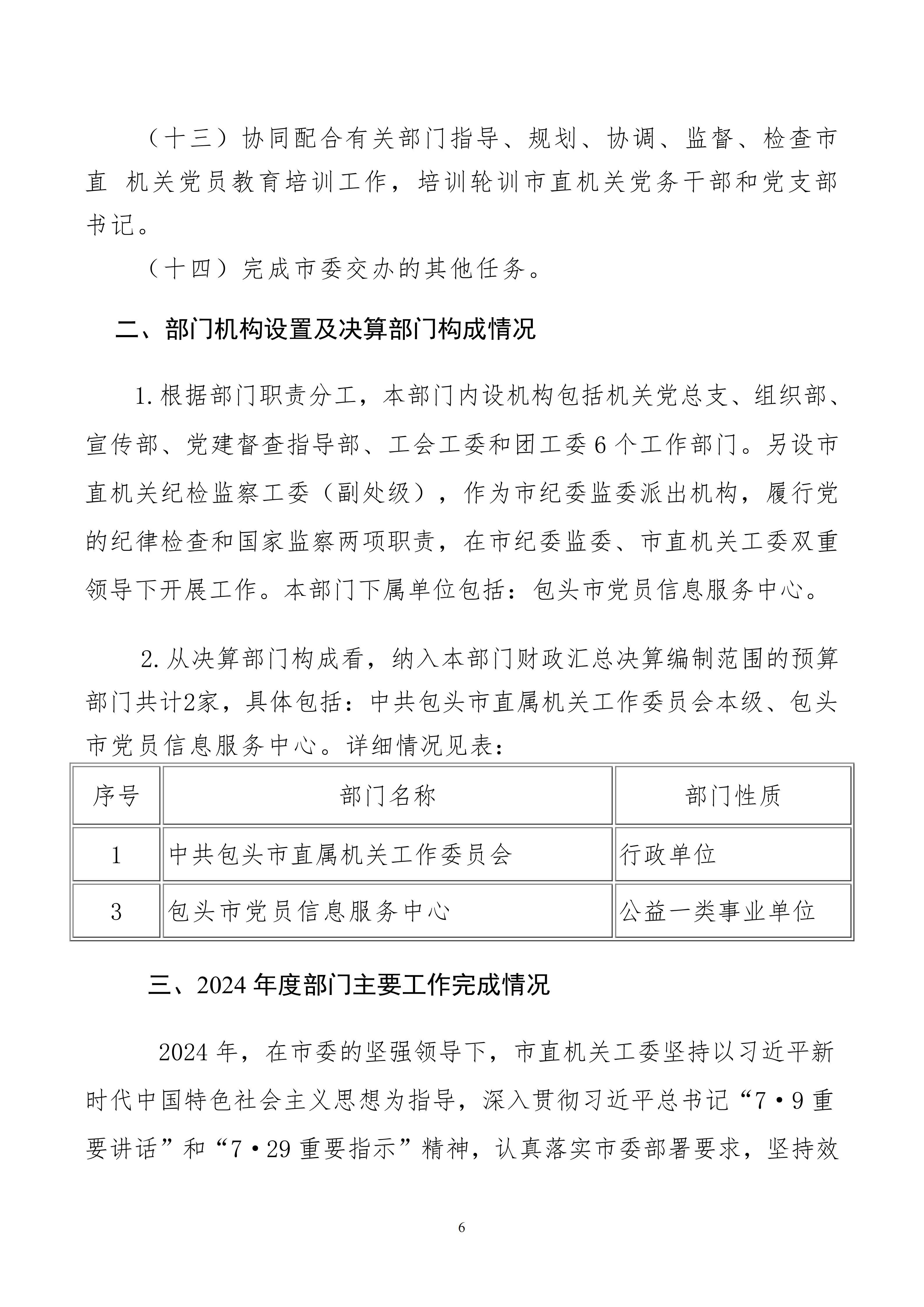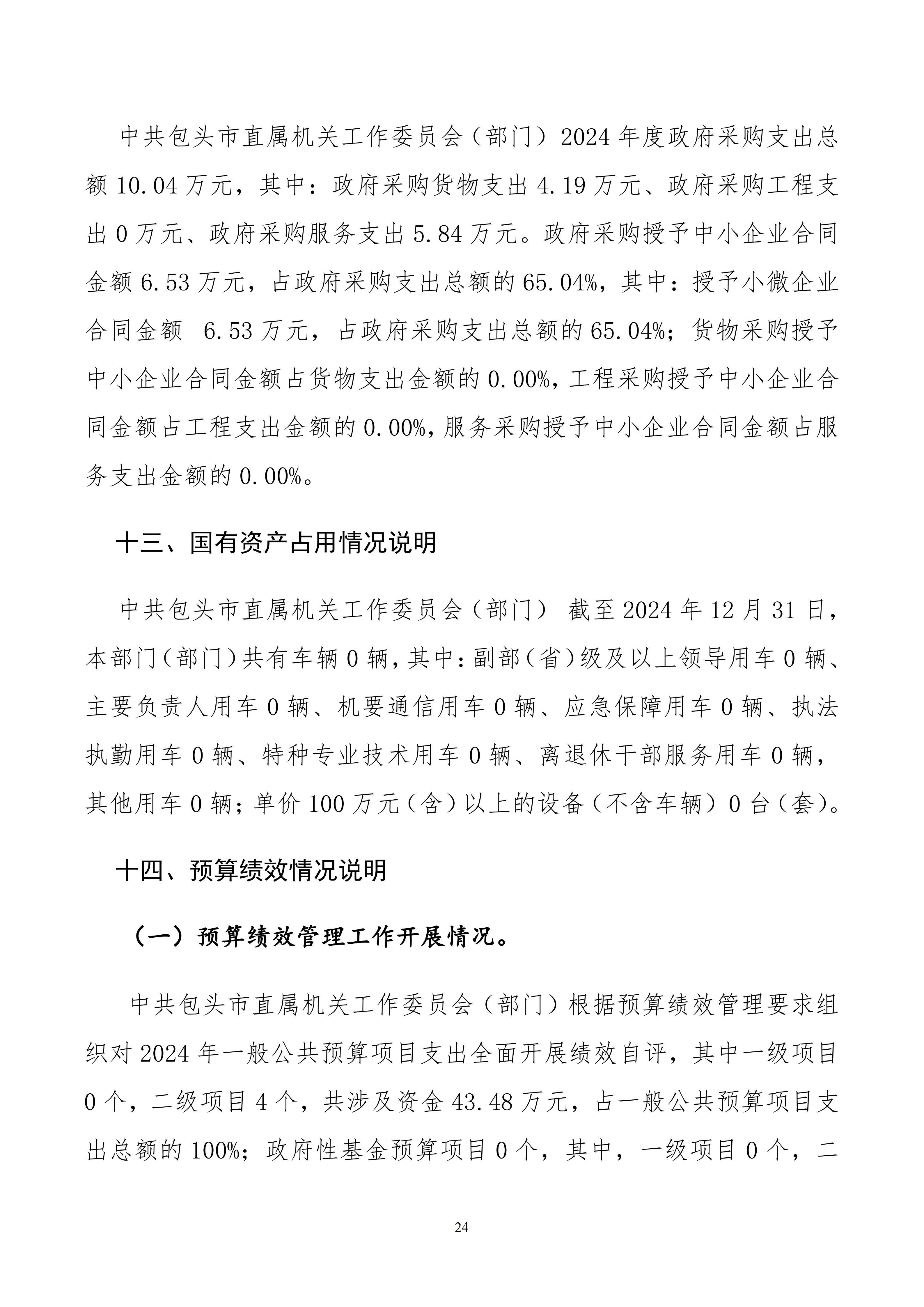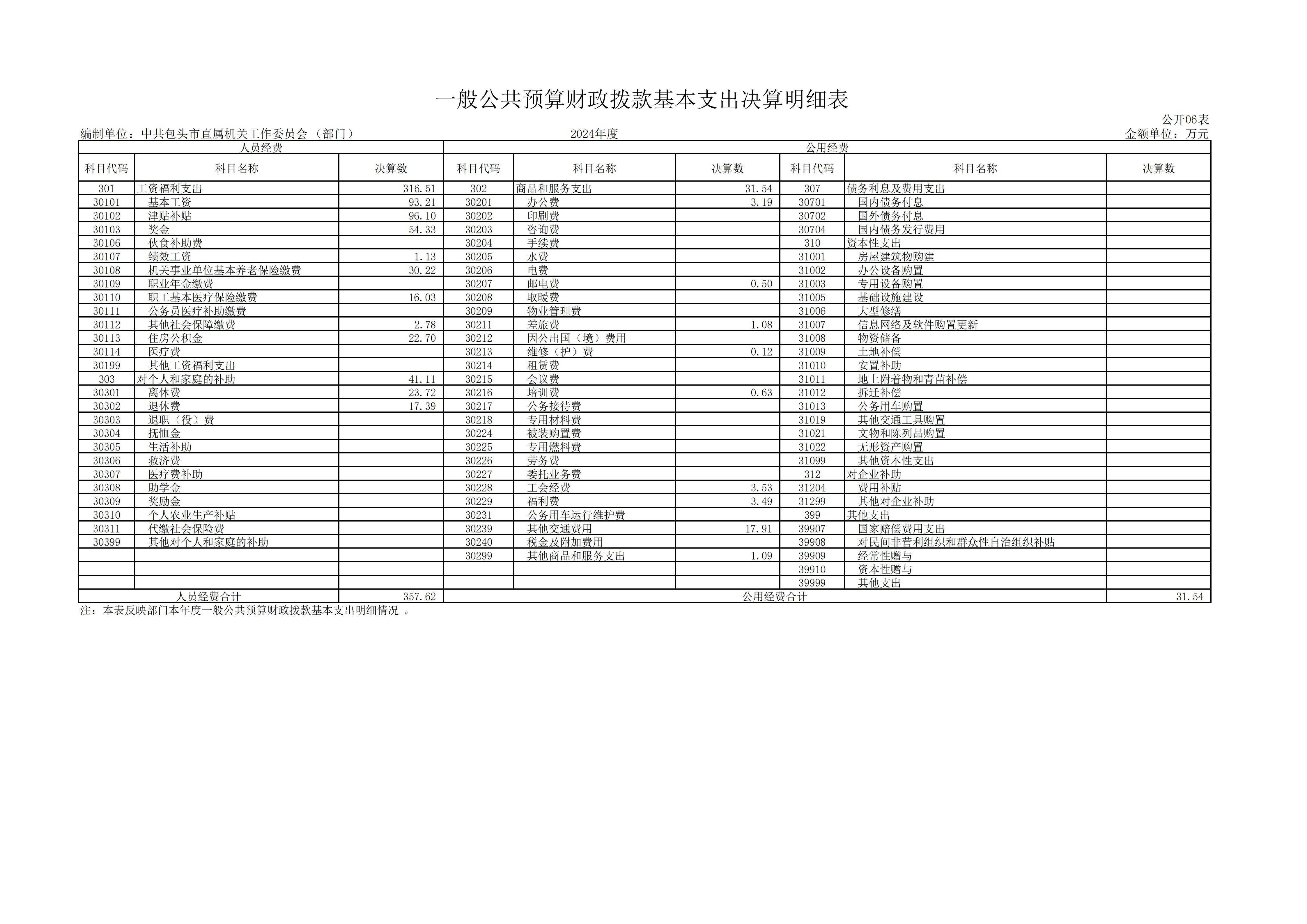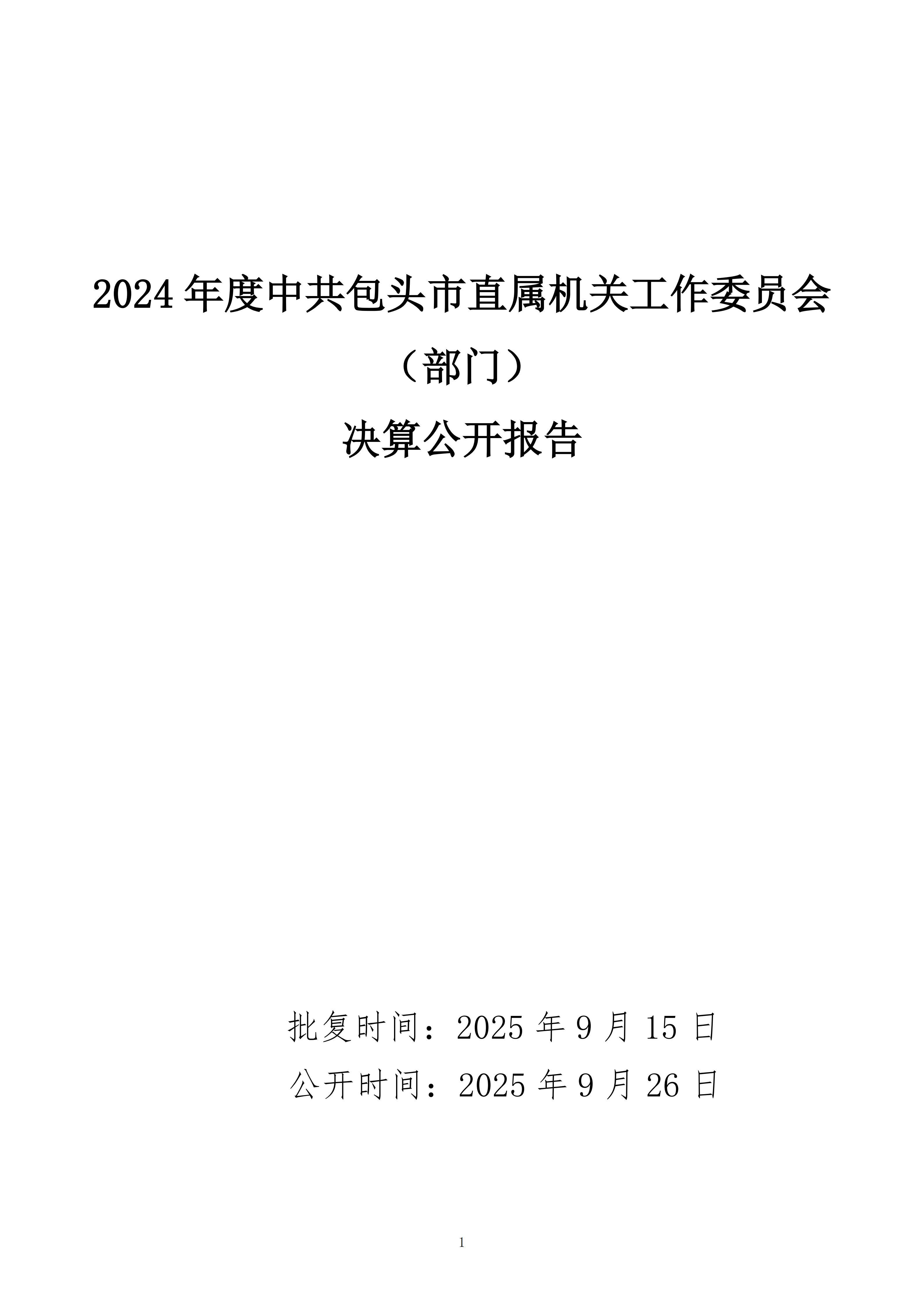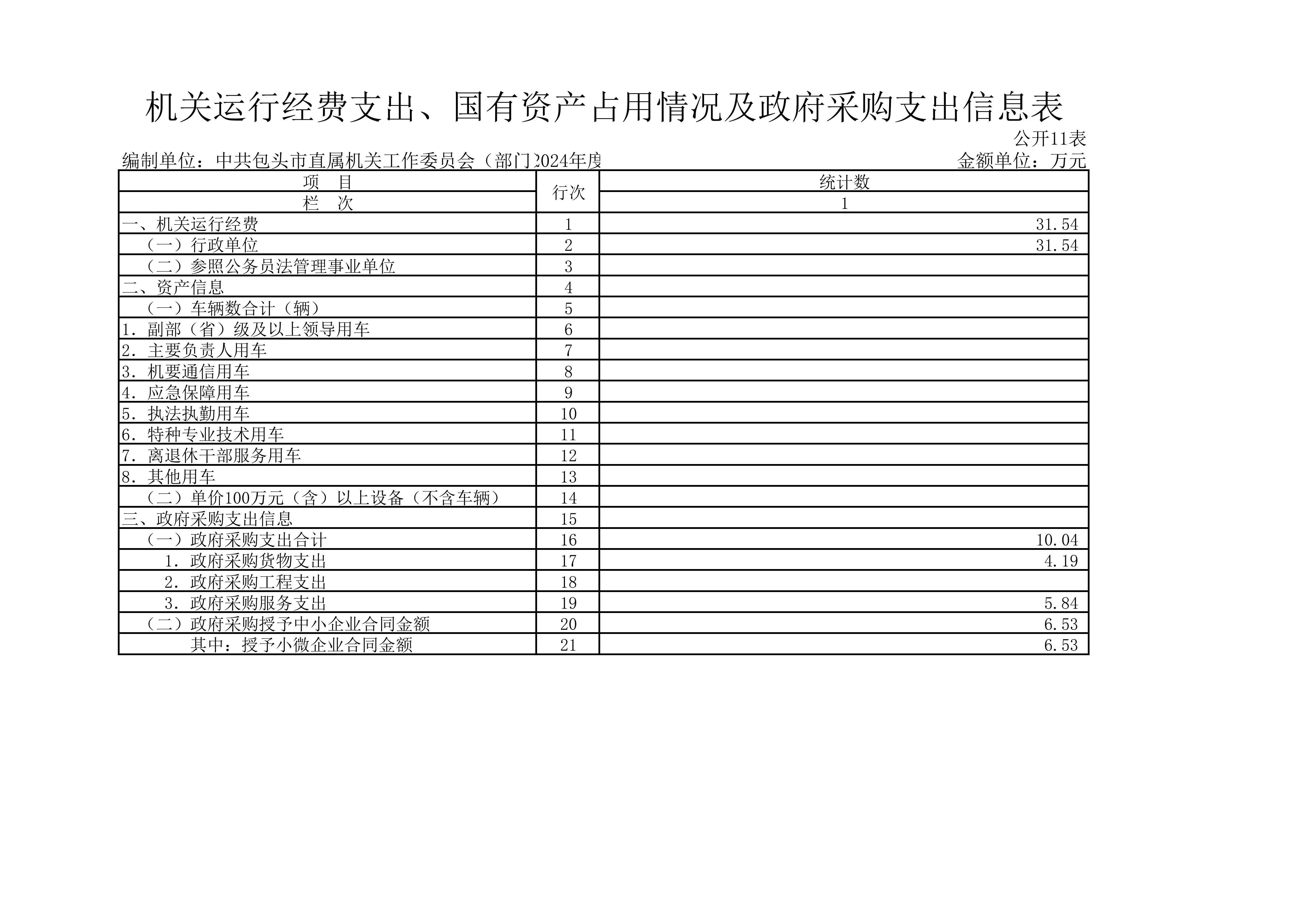 2024年度中共包头市直属机关工作委员会部门决算公开