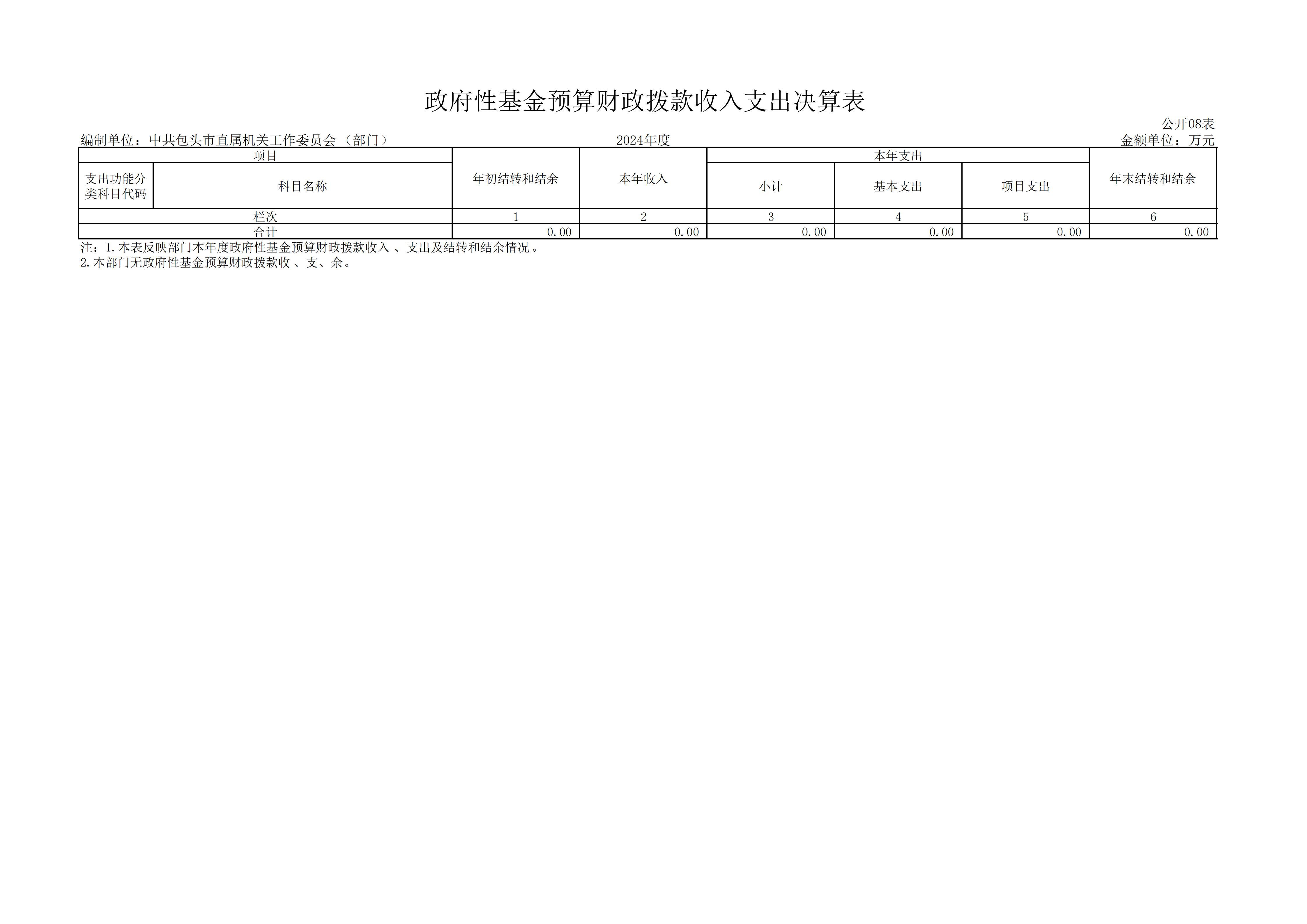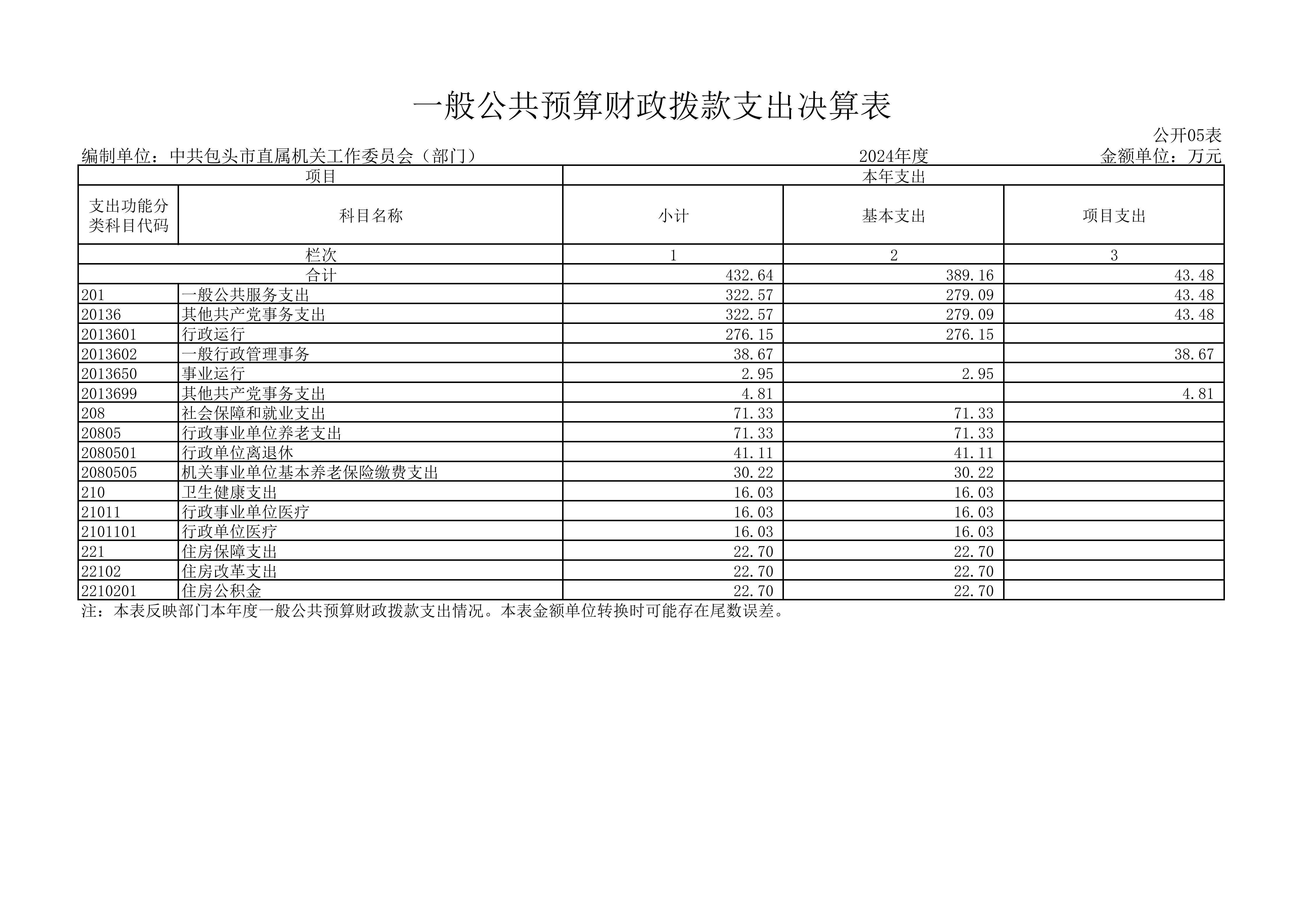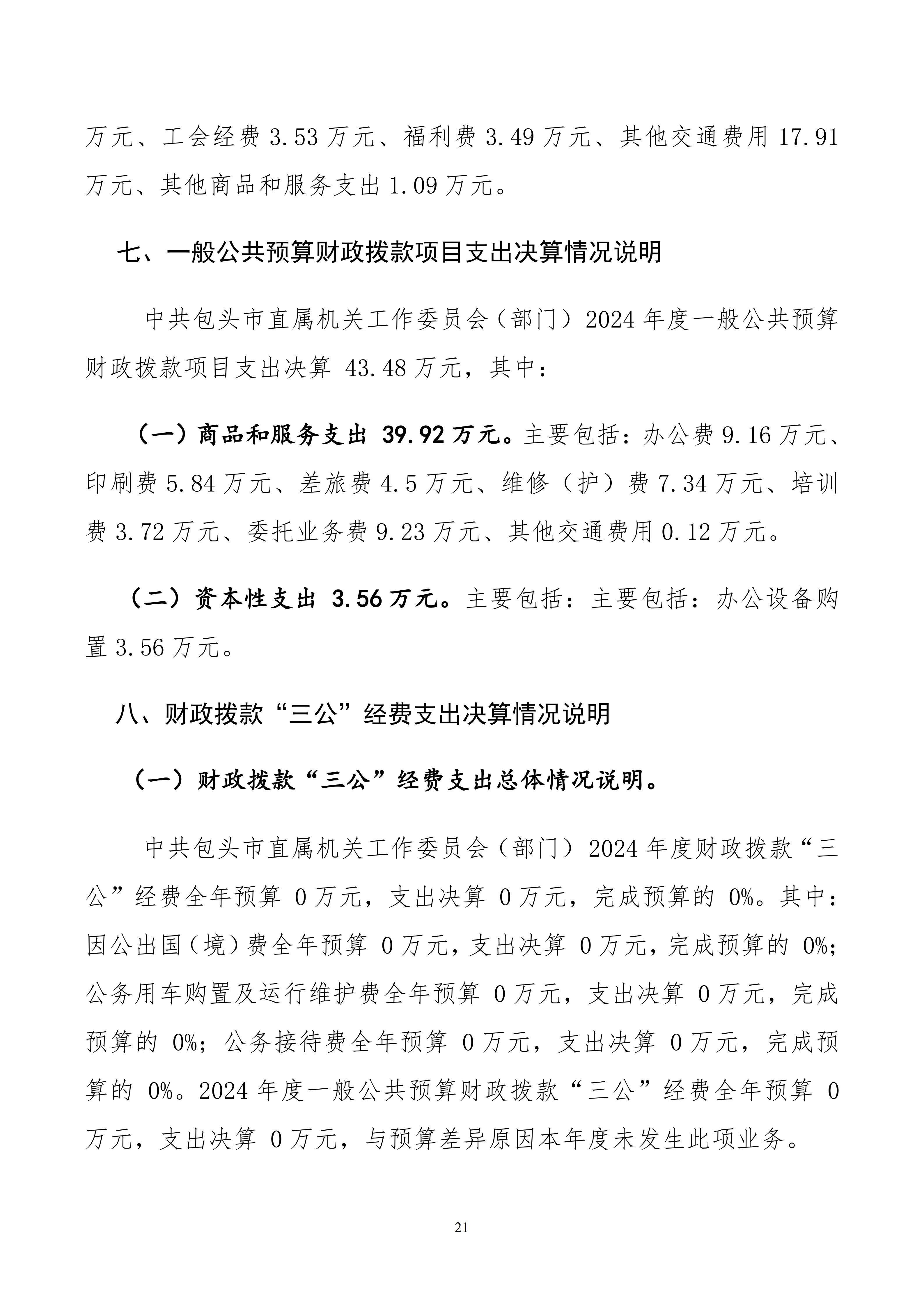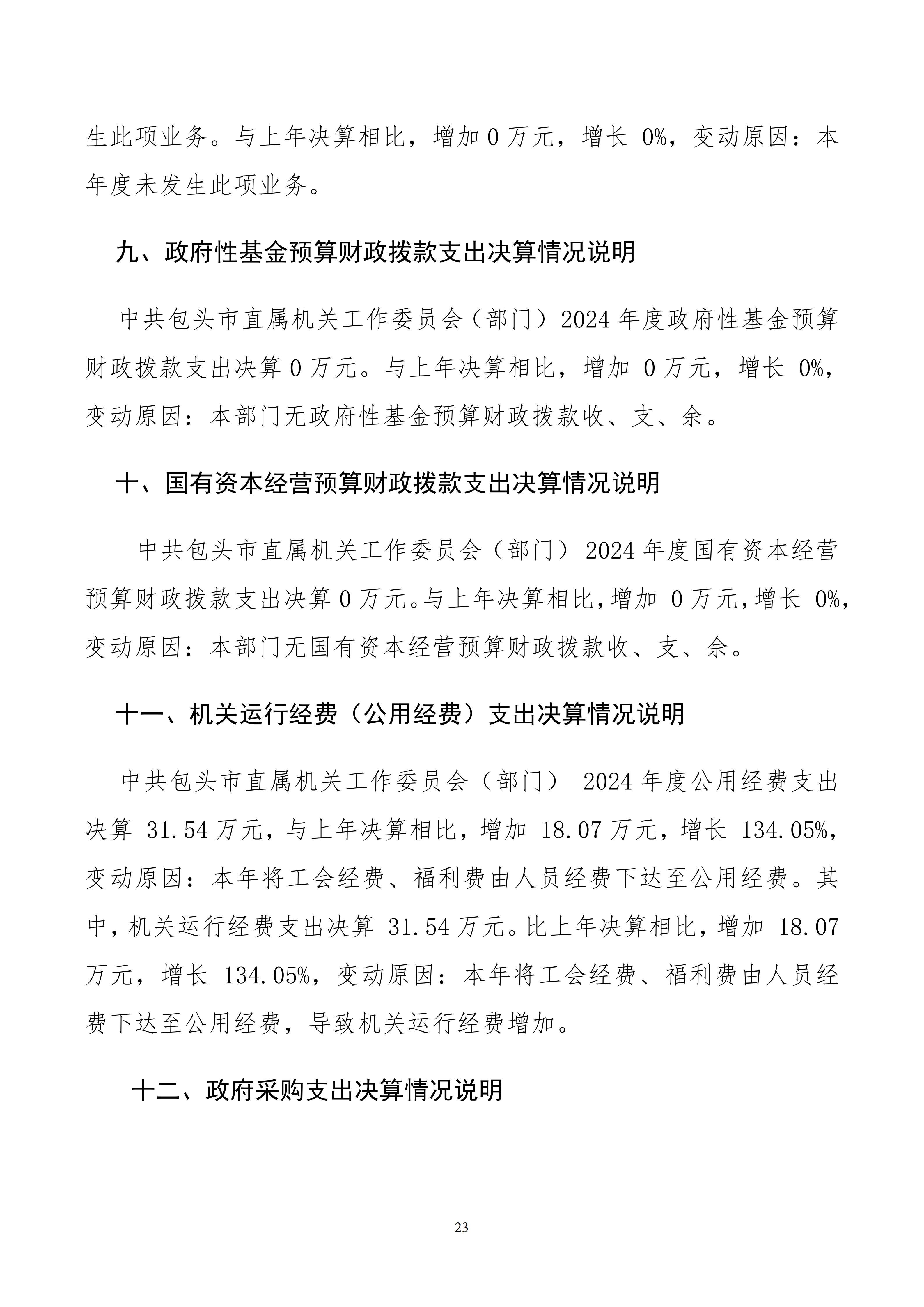 2024年度中共包头市直属机关工作委员会部门决算公开
