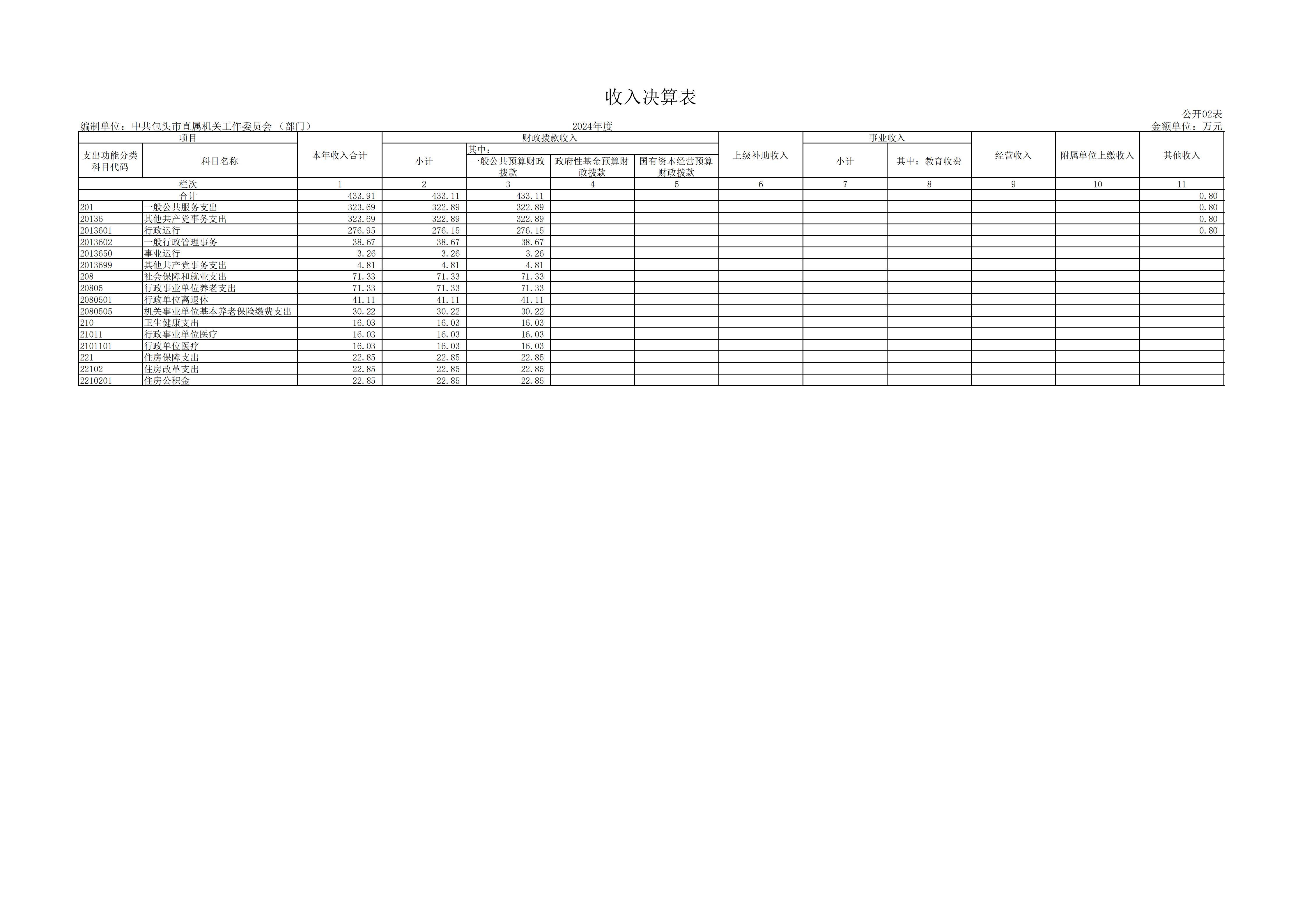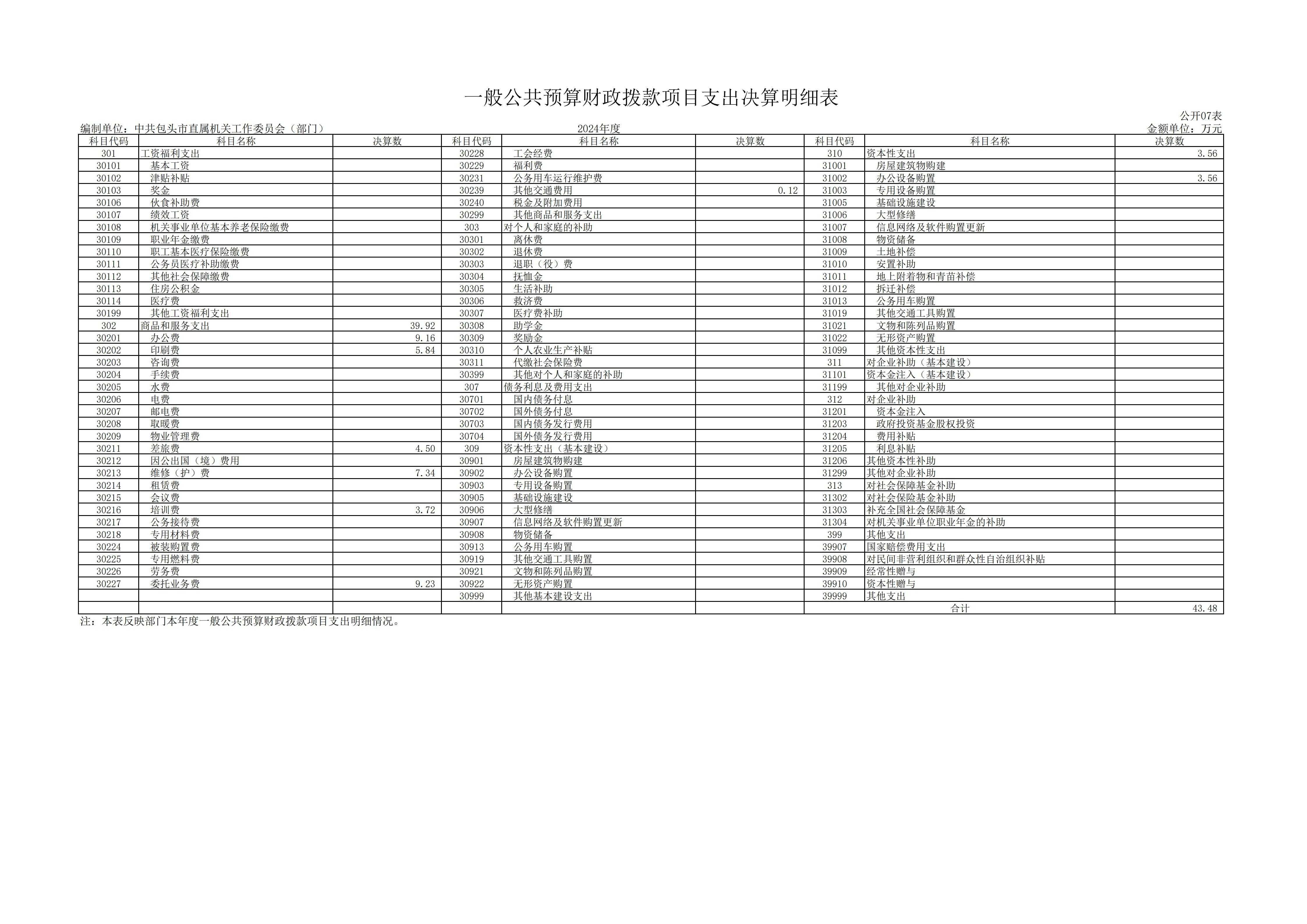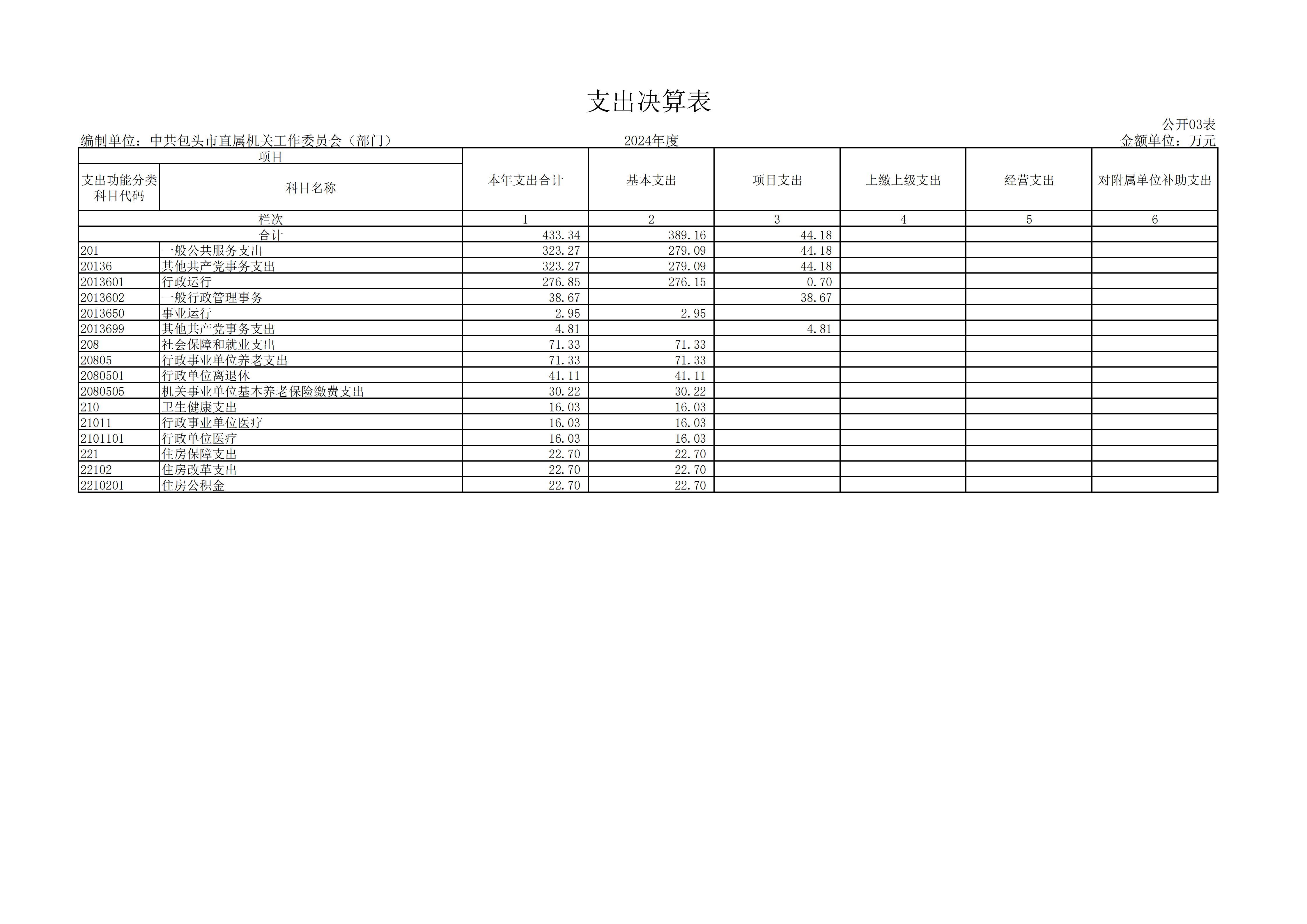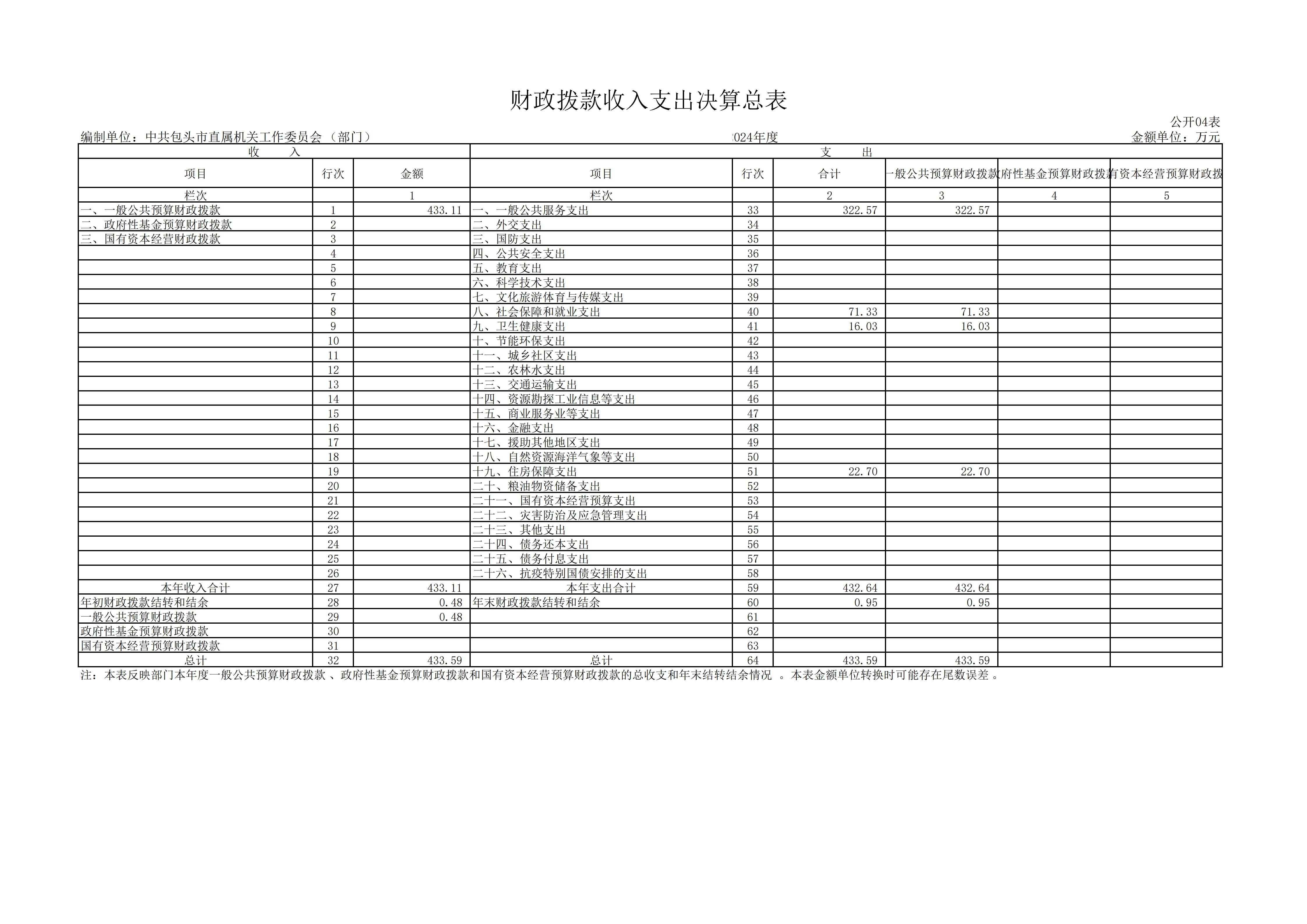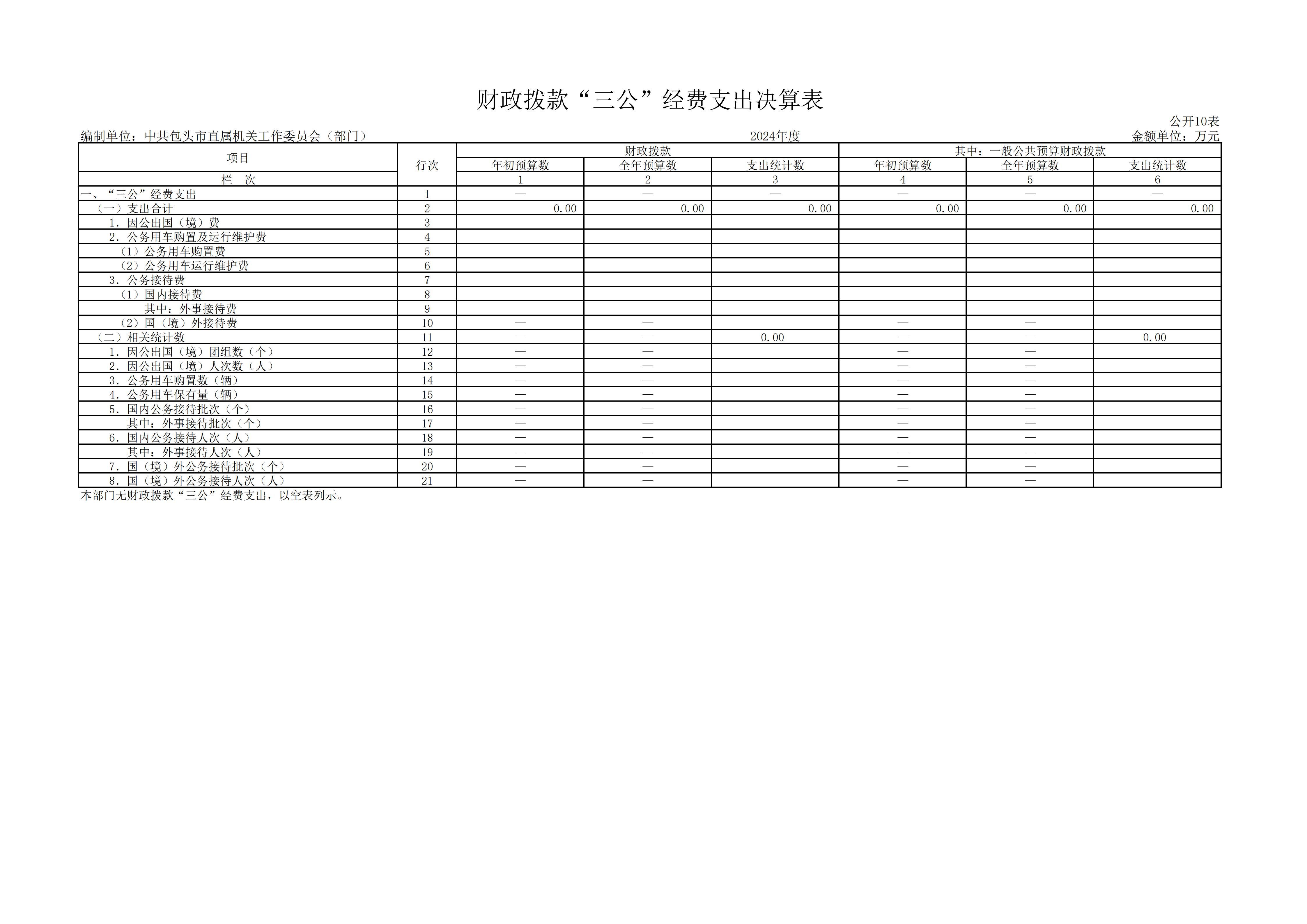2024年度中共包头市直属机关工作委员会部门决算公开