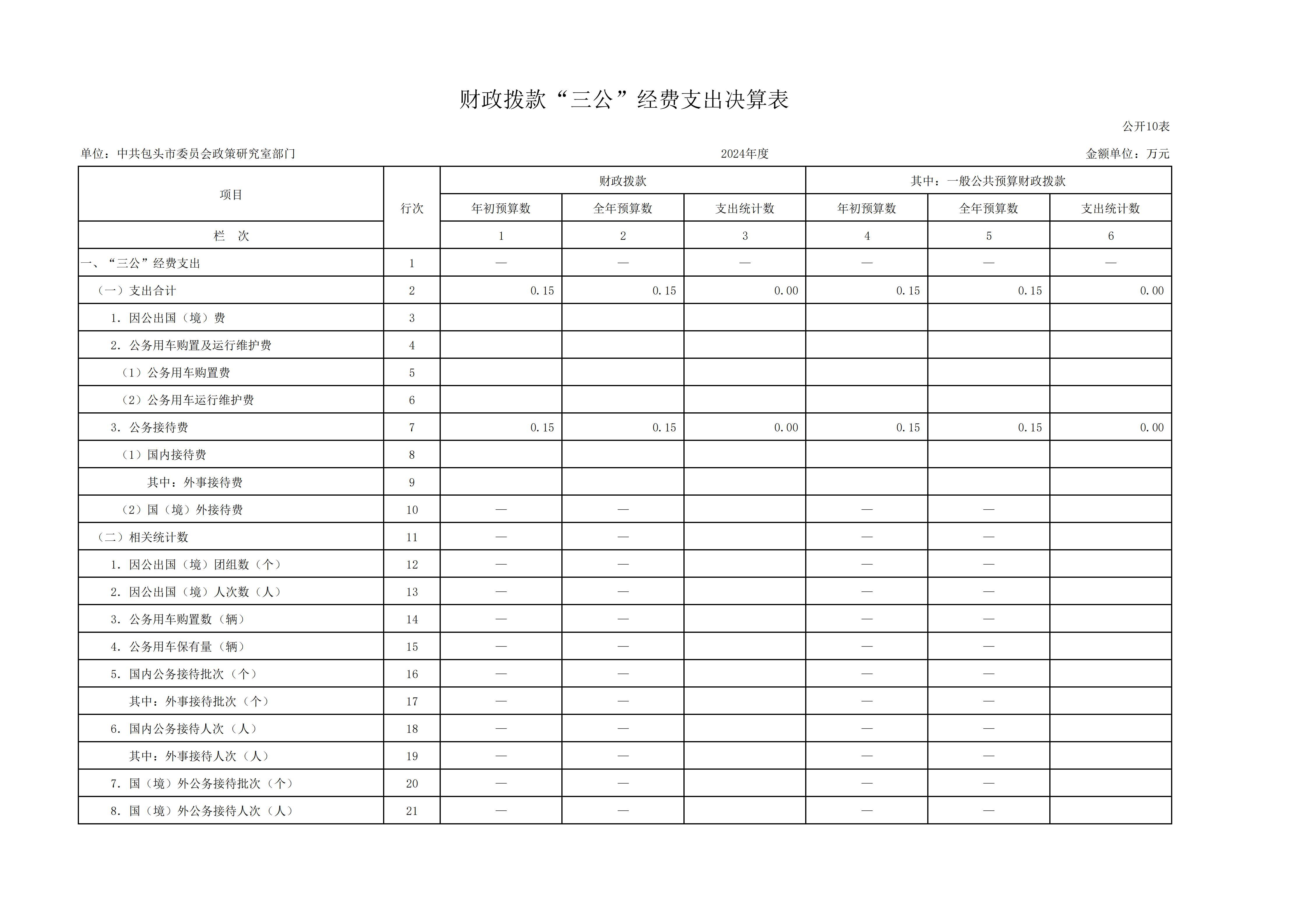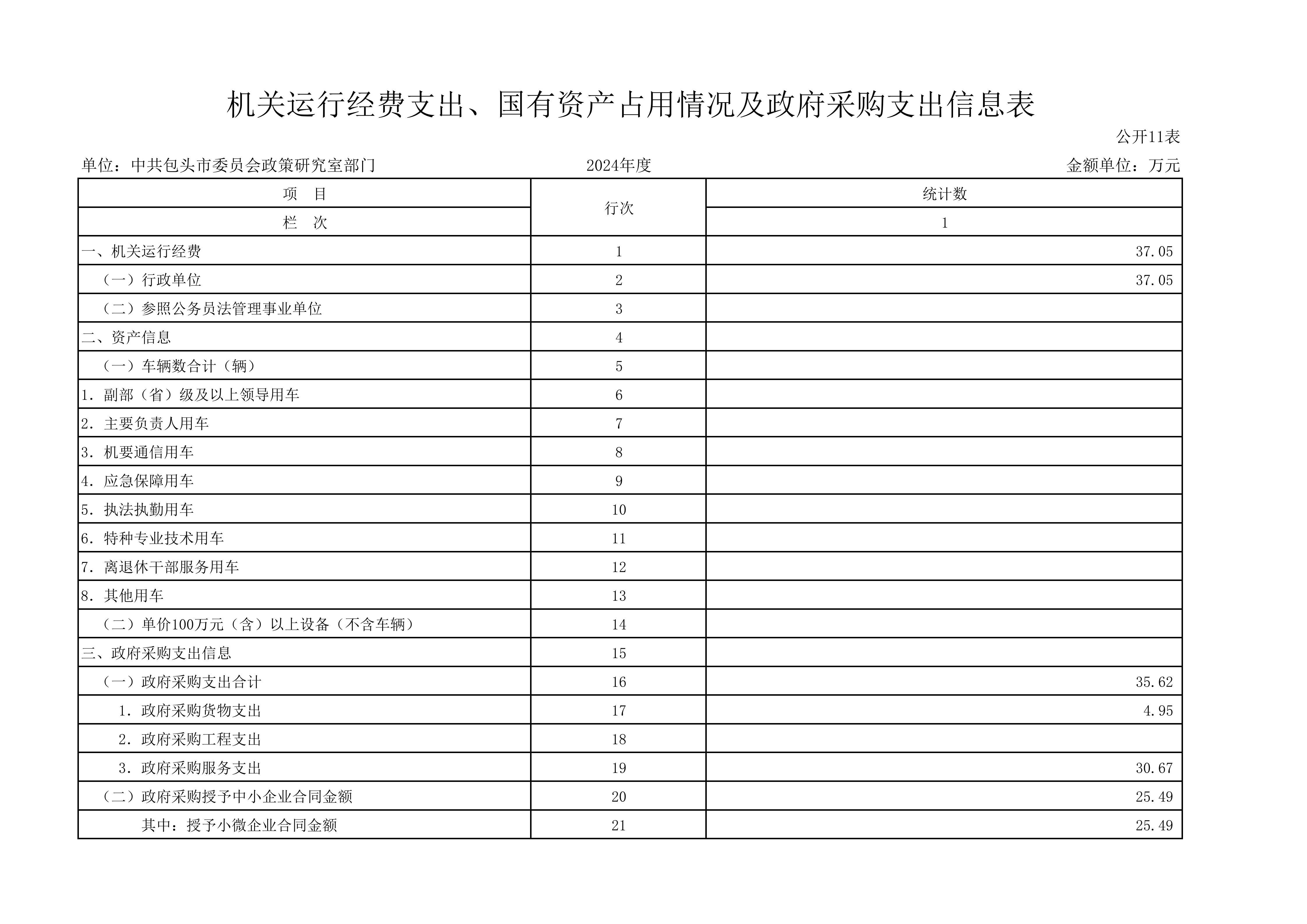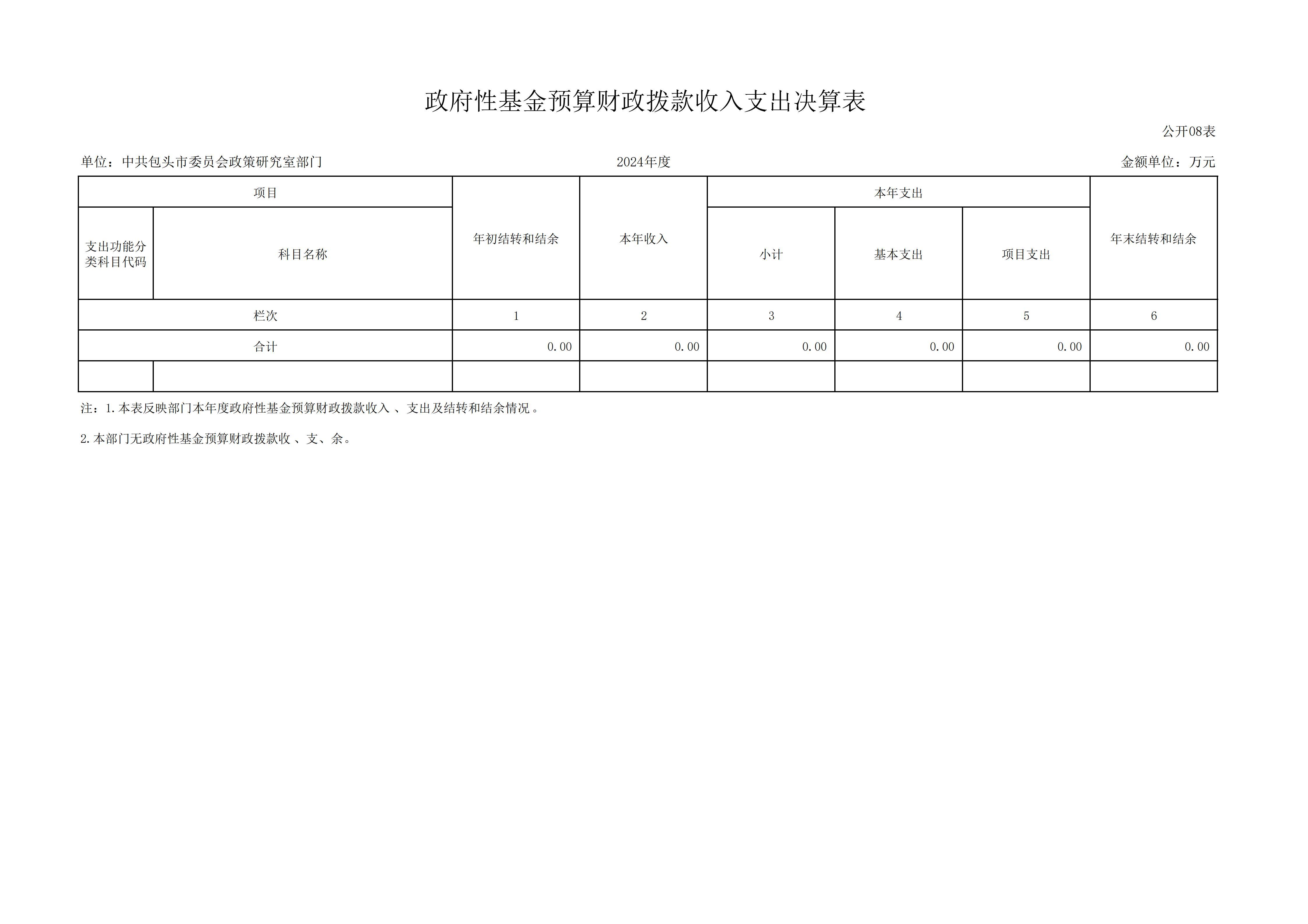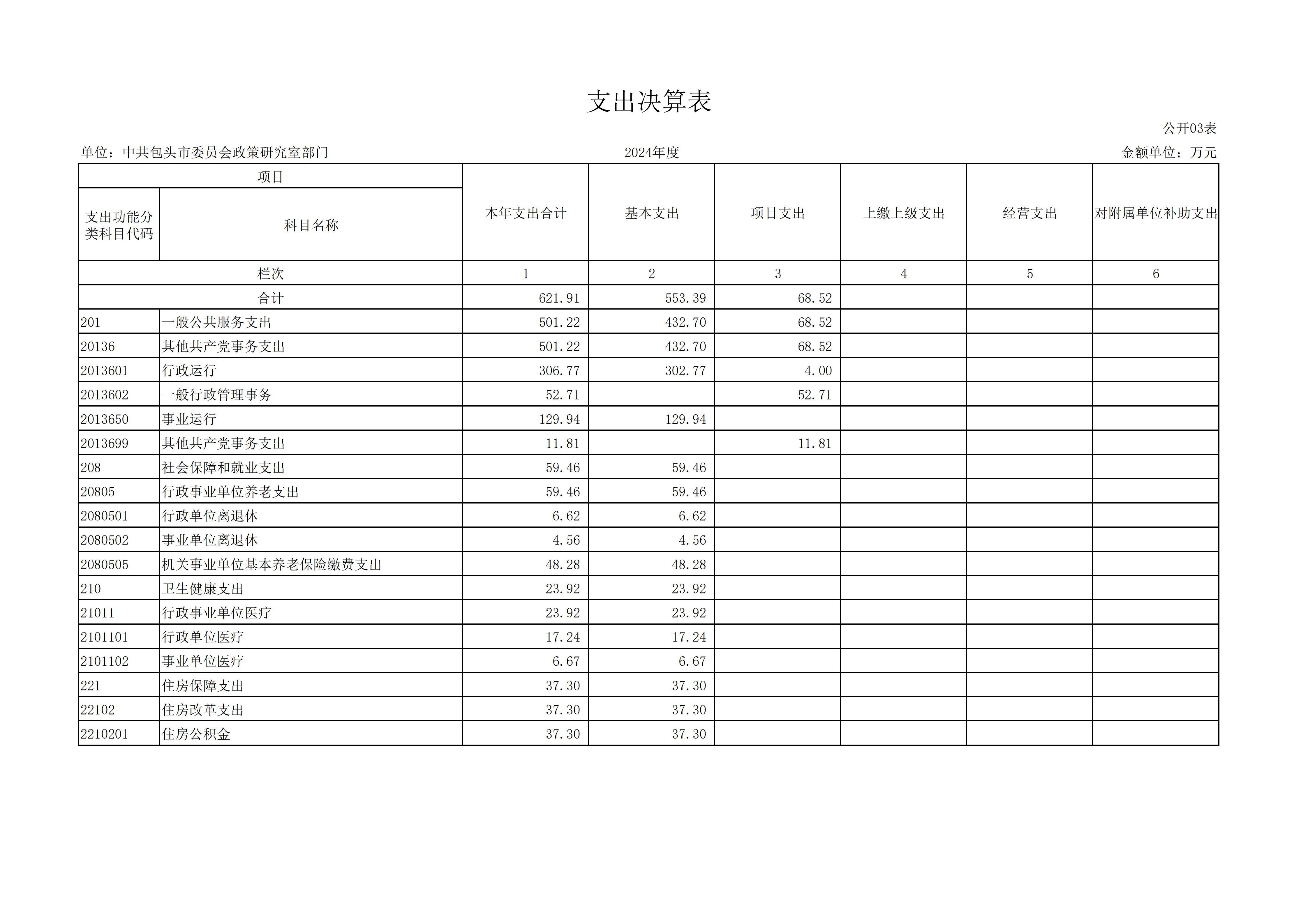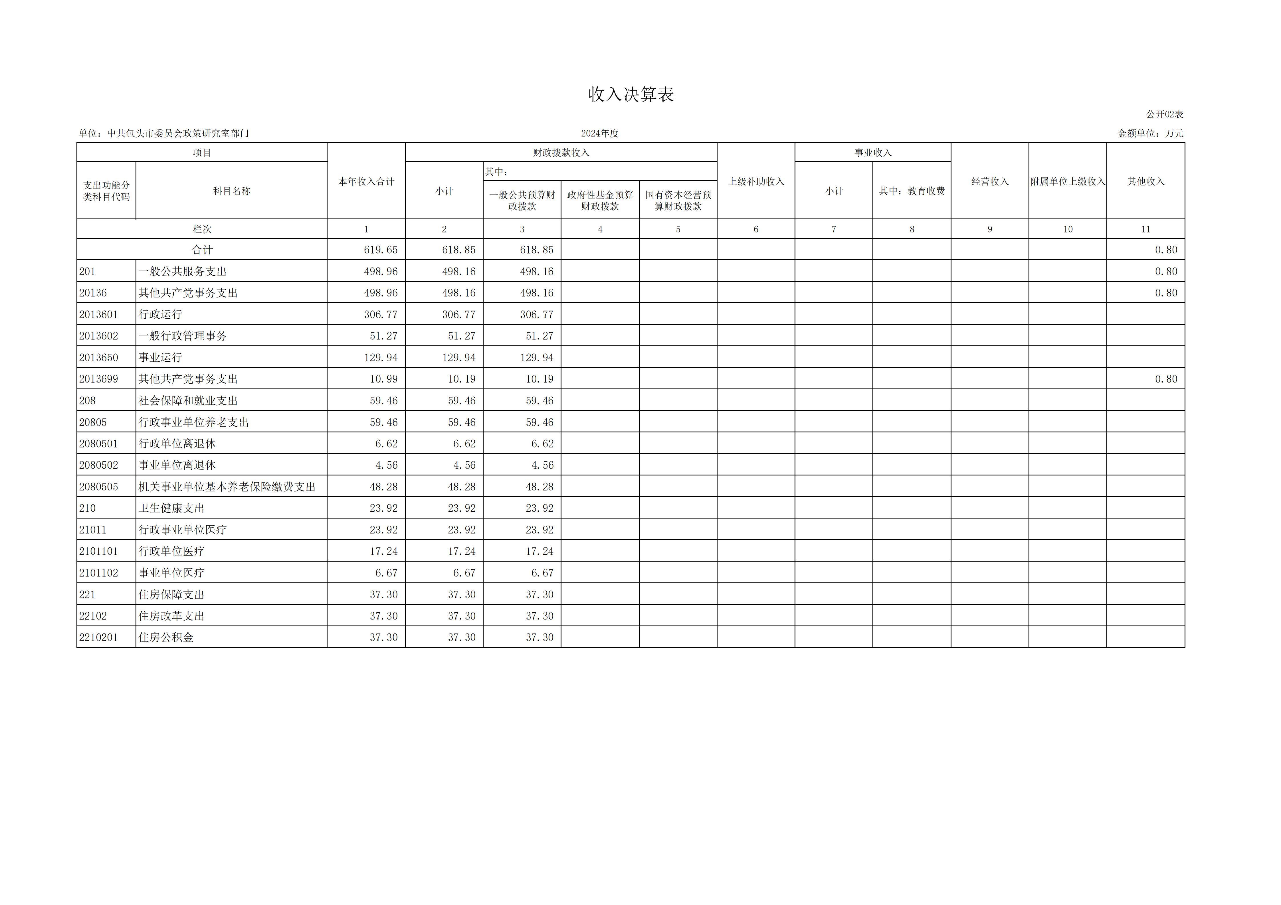 2024年度中共包头市委员会政策研究室部门决算公开