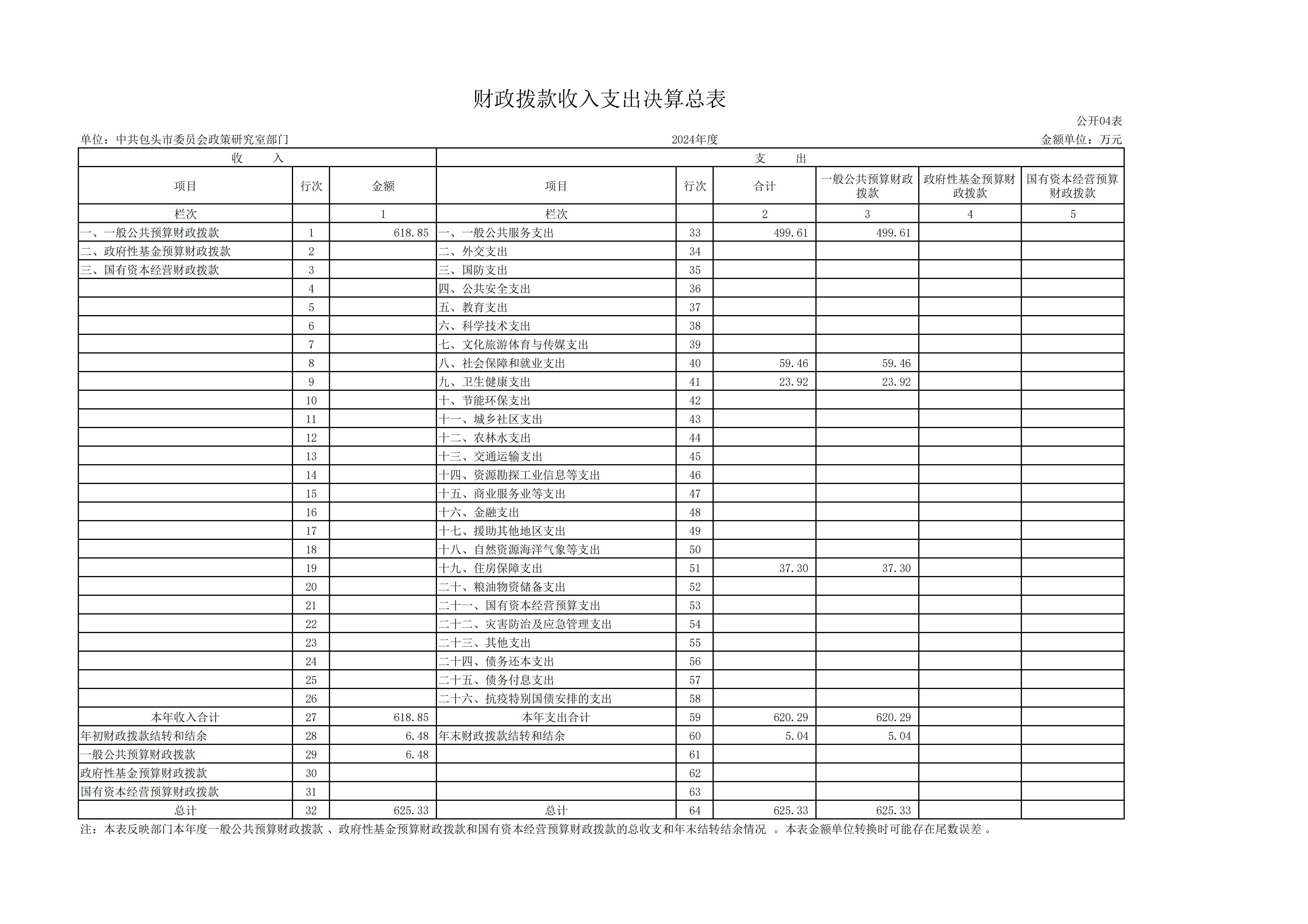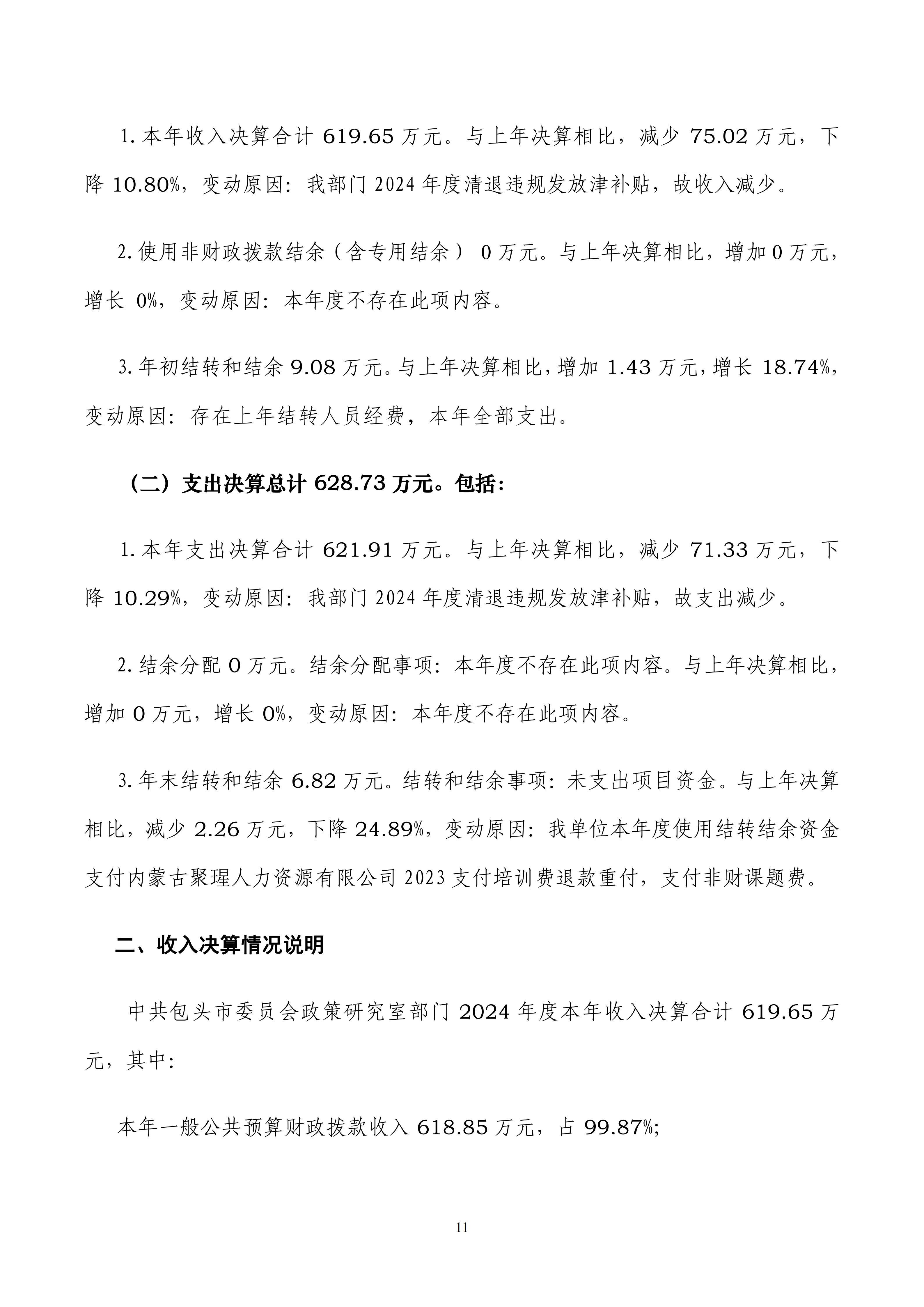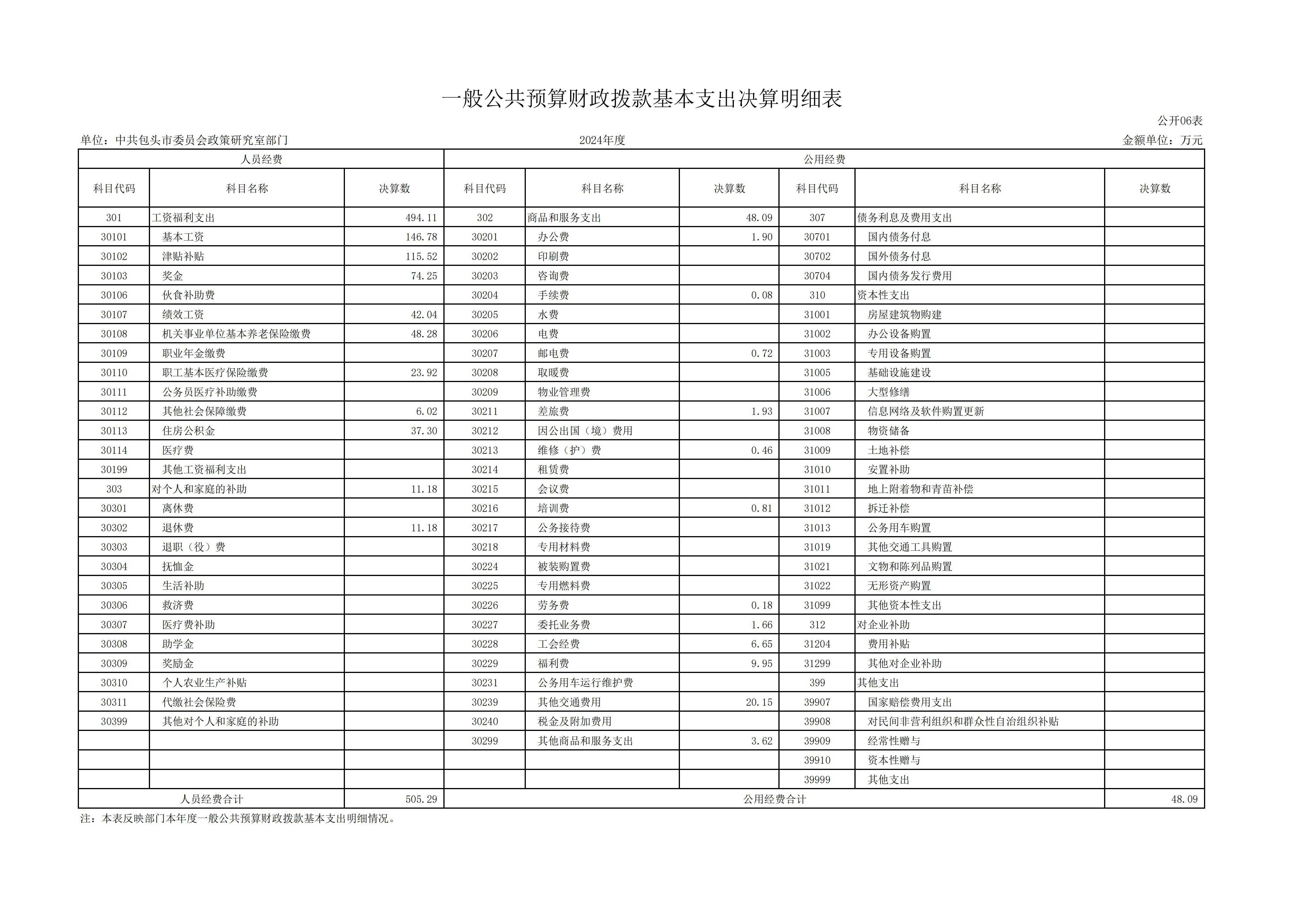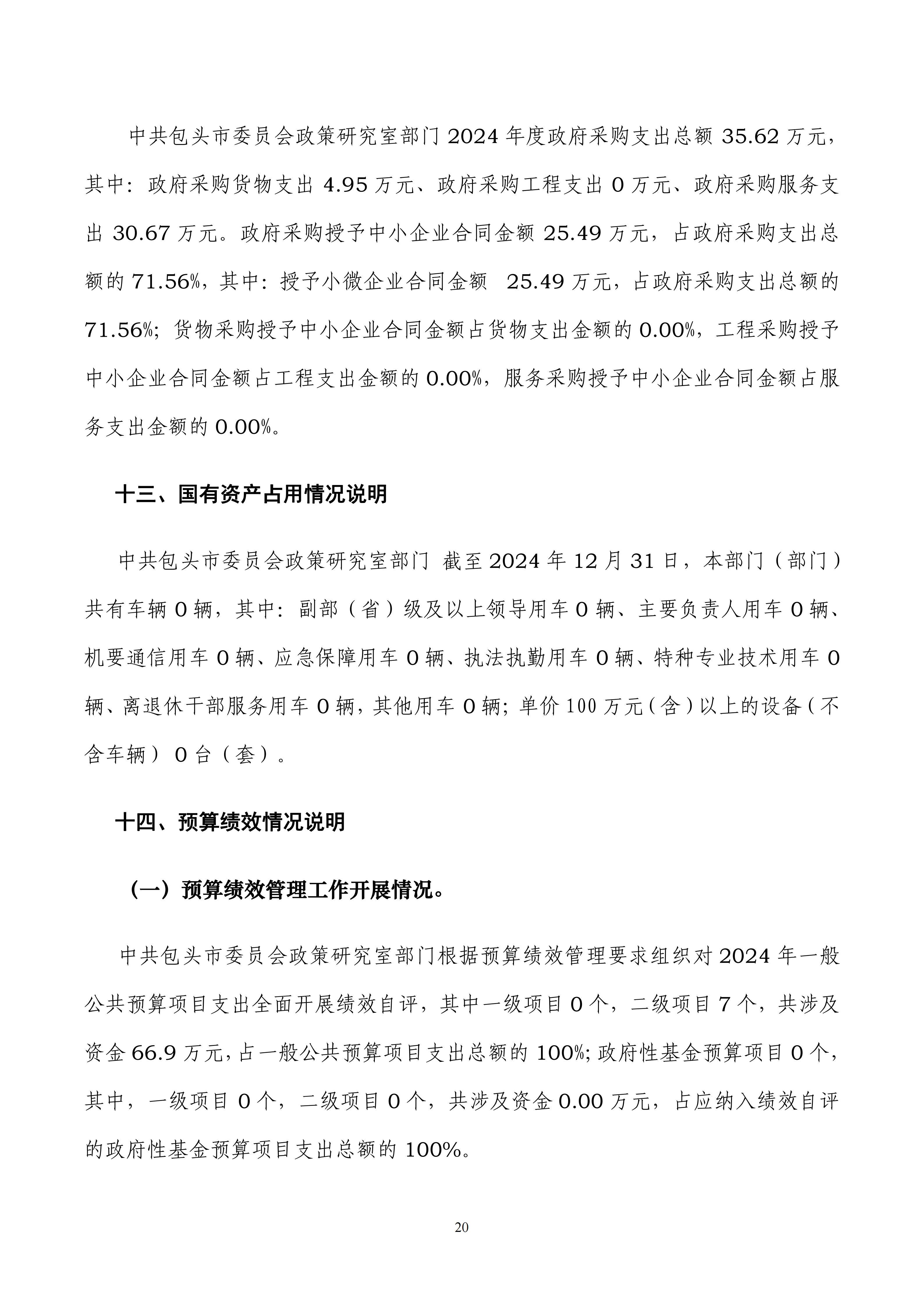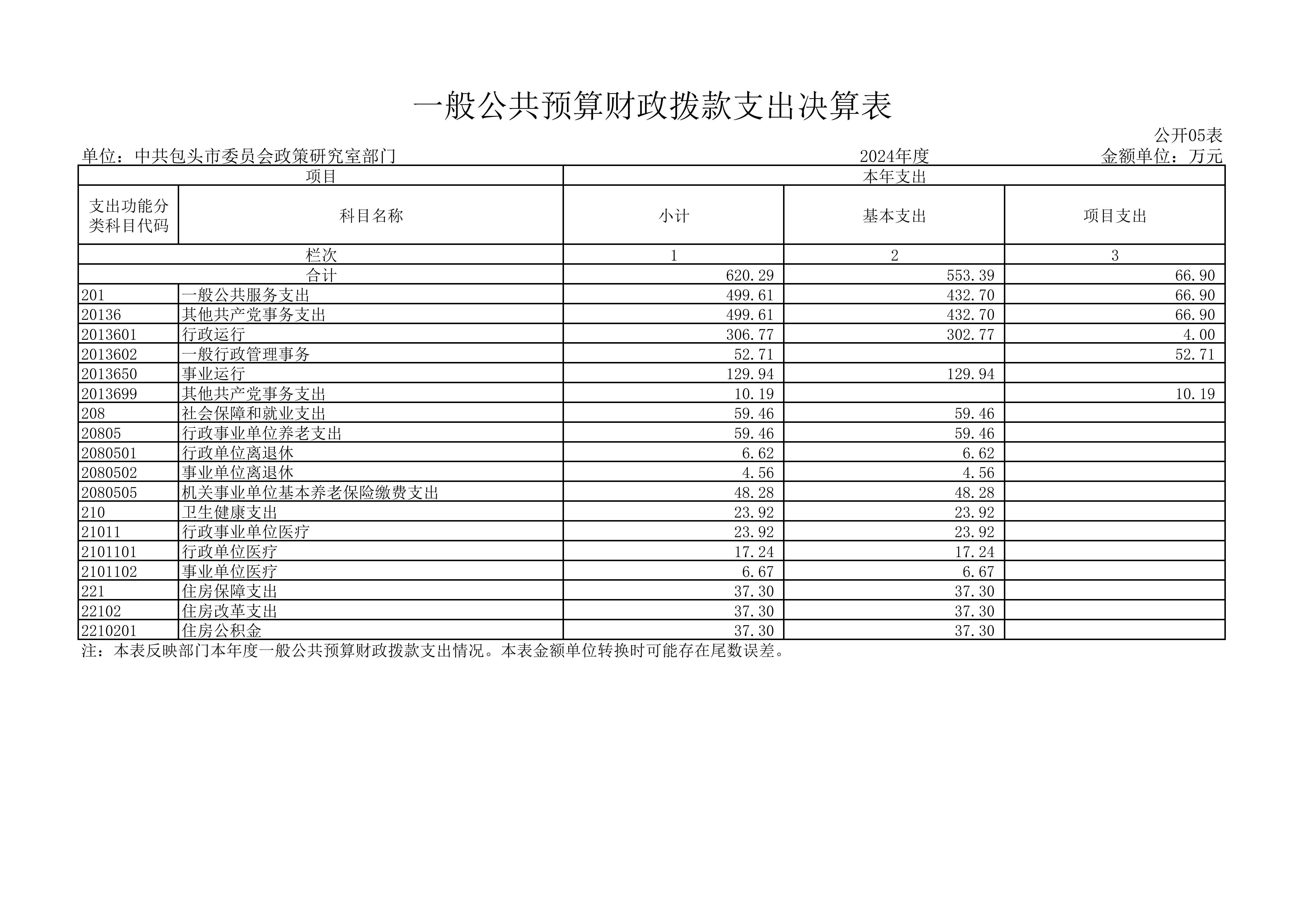 2024年度中共包头市委员会政策研究室部门决算公开