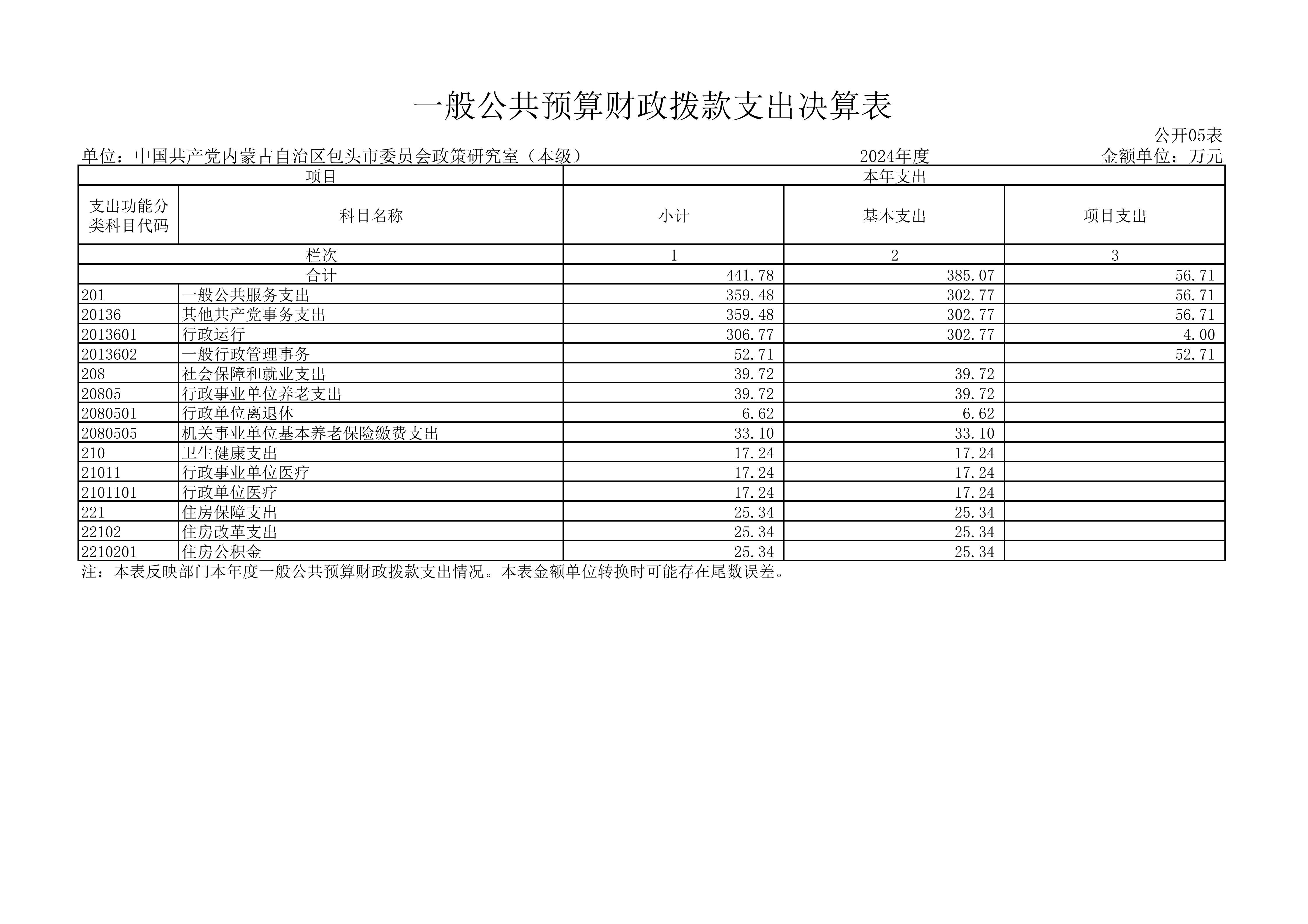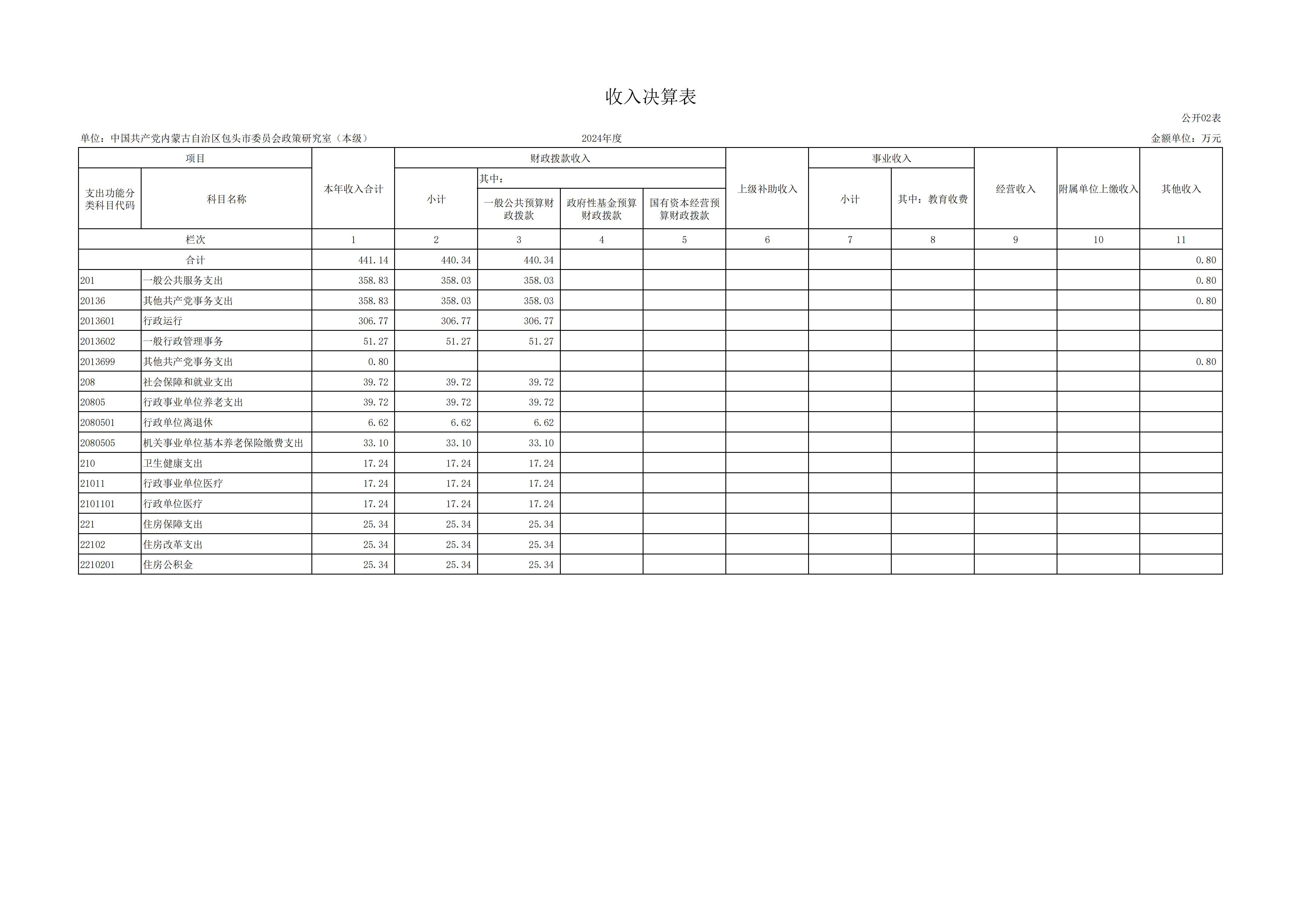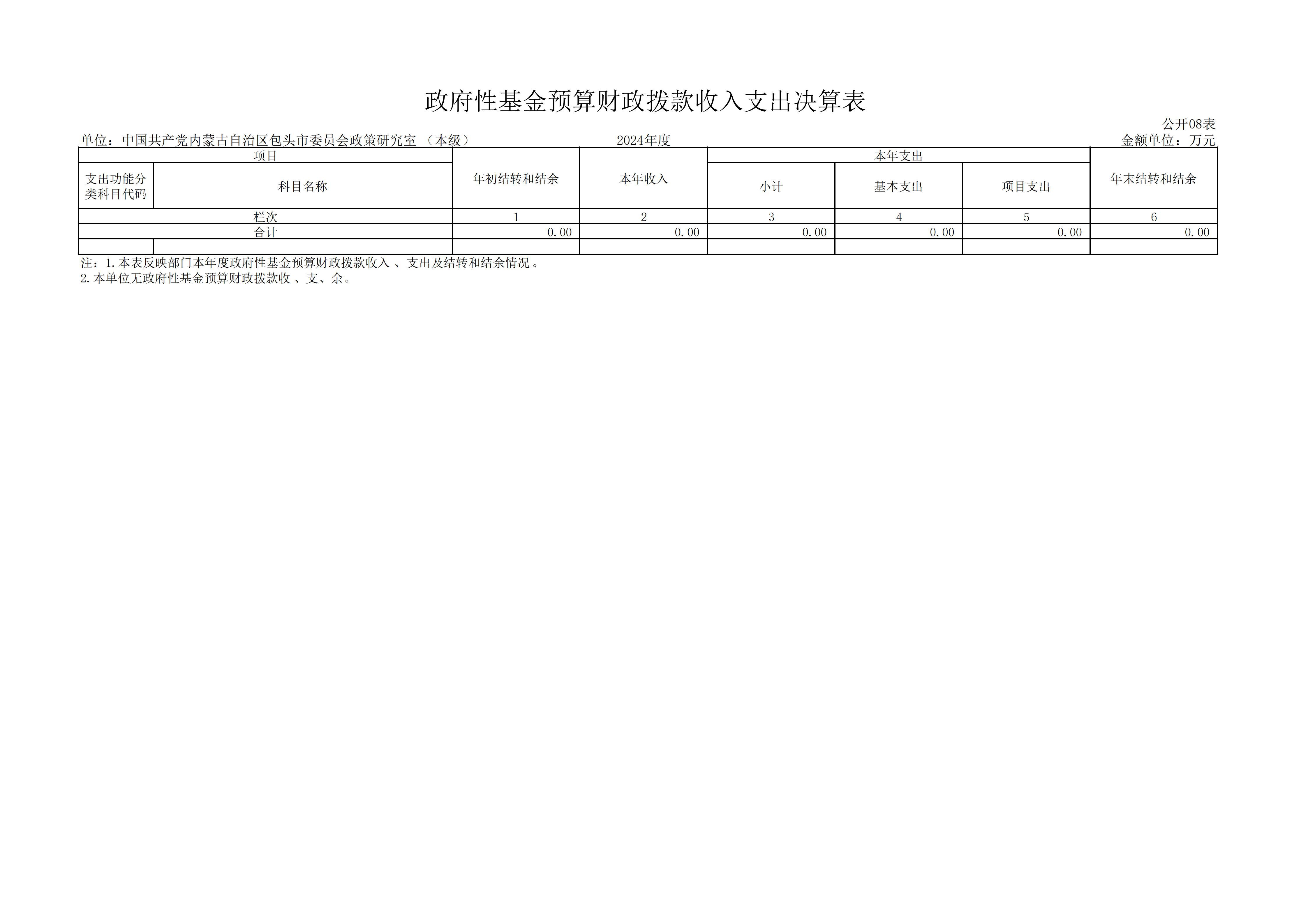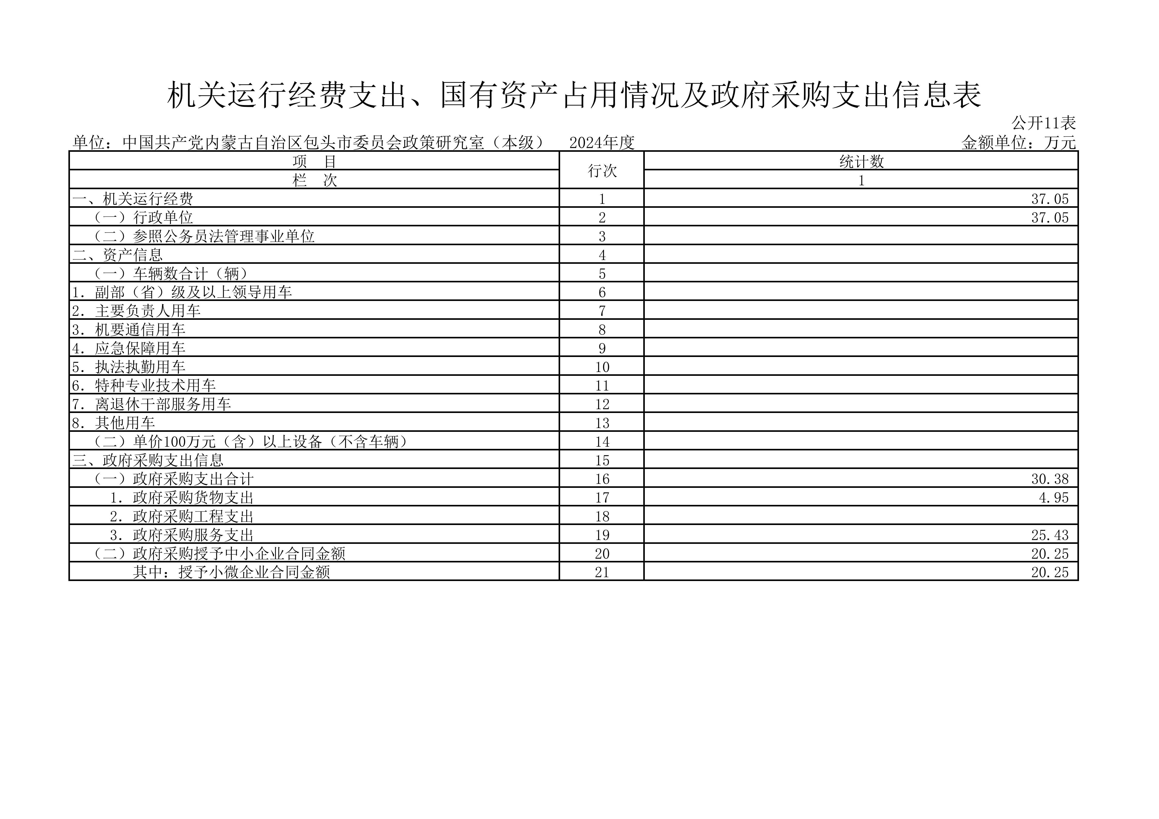 2024年度中共包头市委员会政策研究室本级决算公开