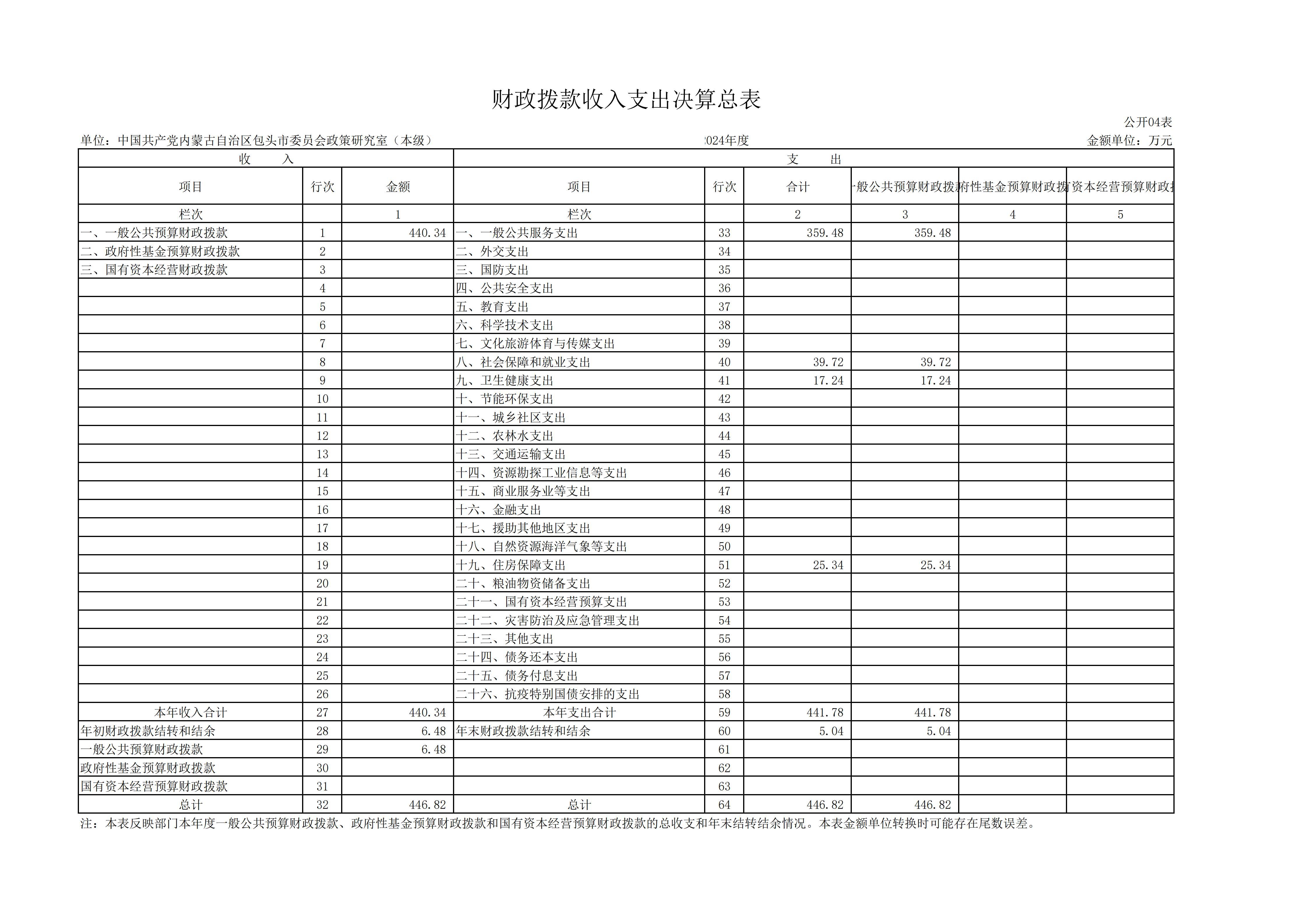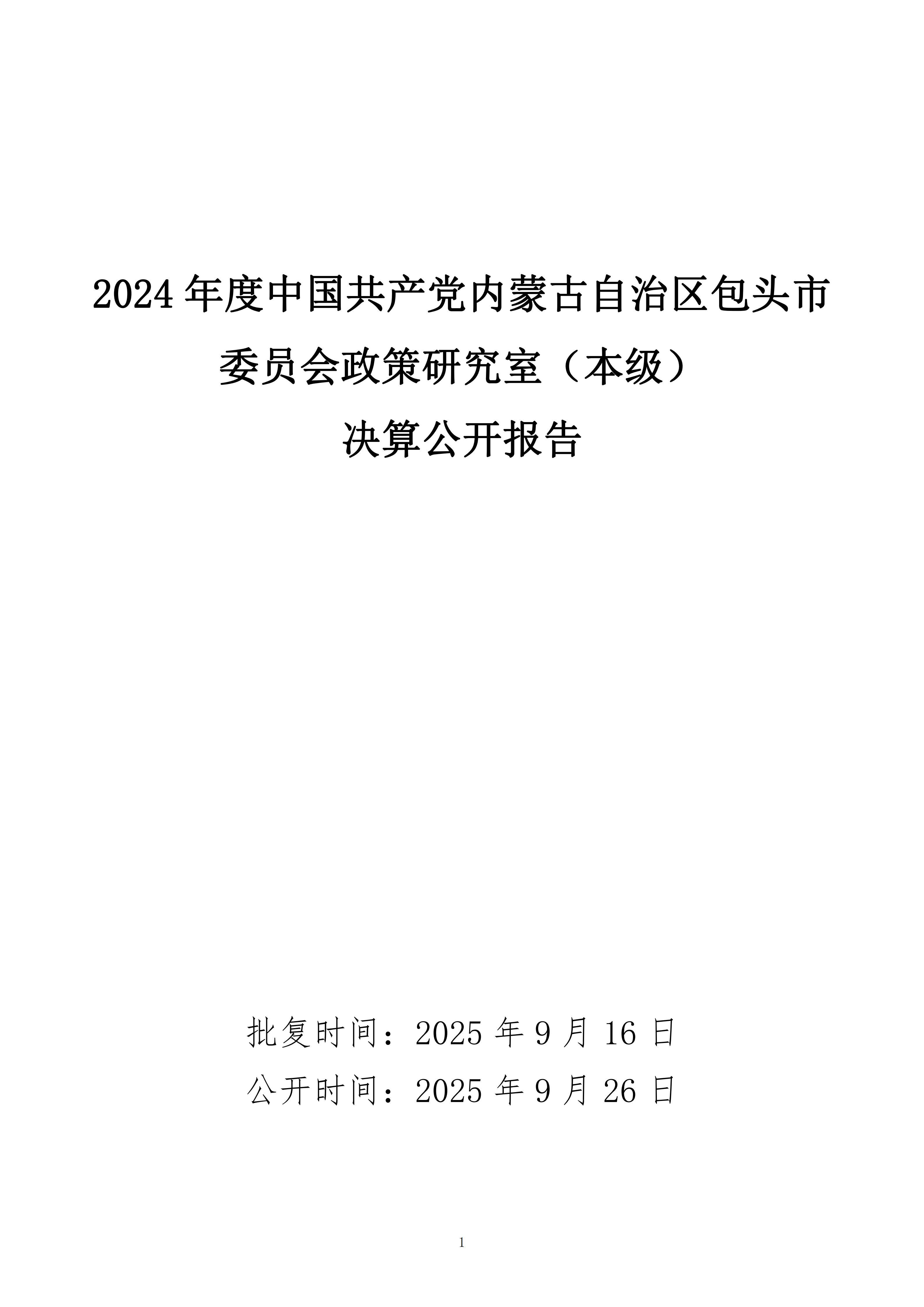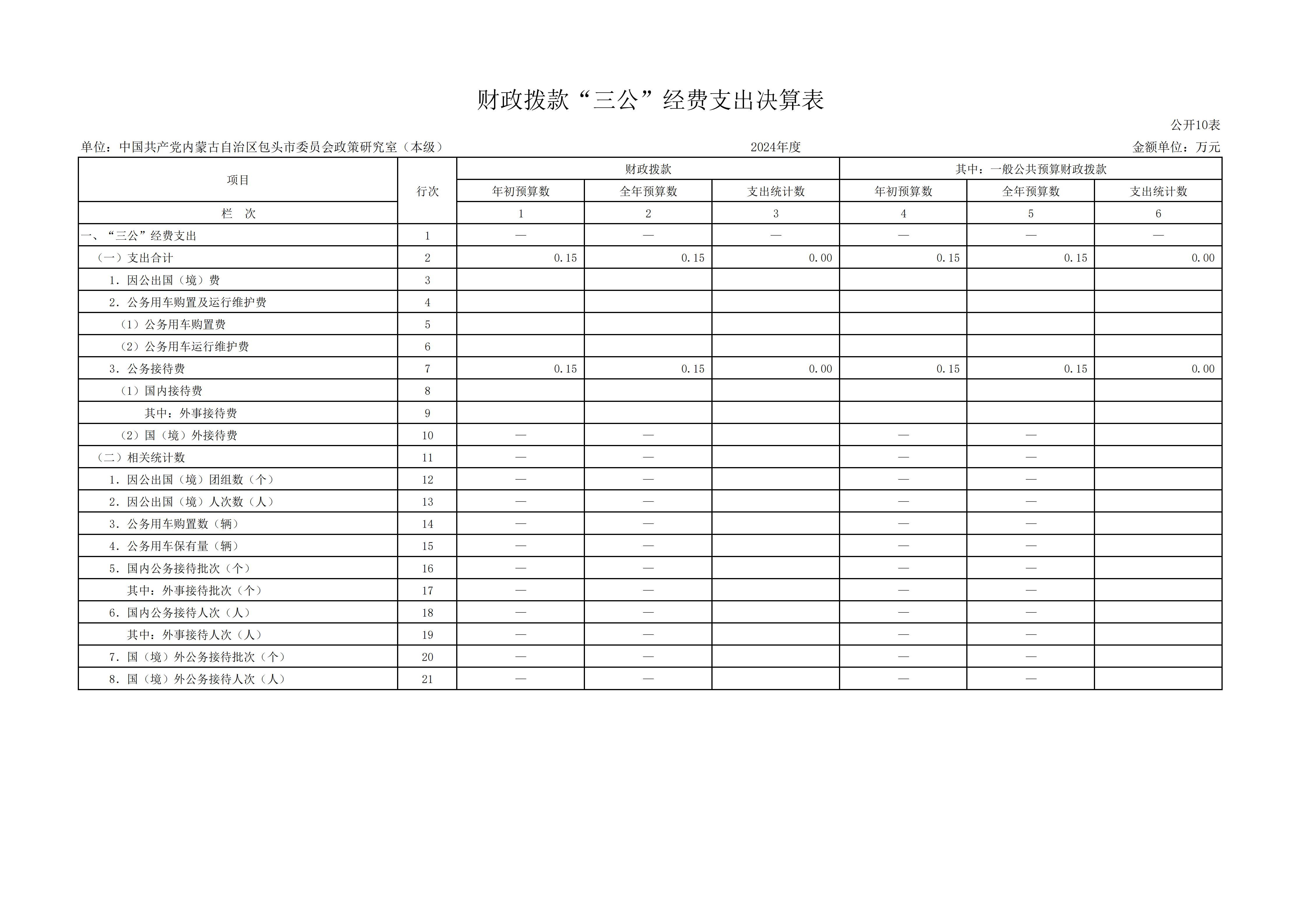 2024年度中共包头市委员会政策研究室本级决算公开