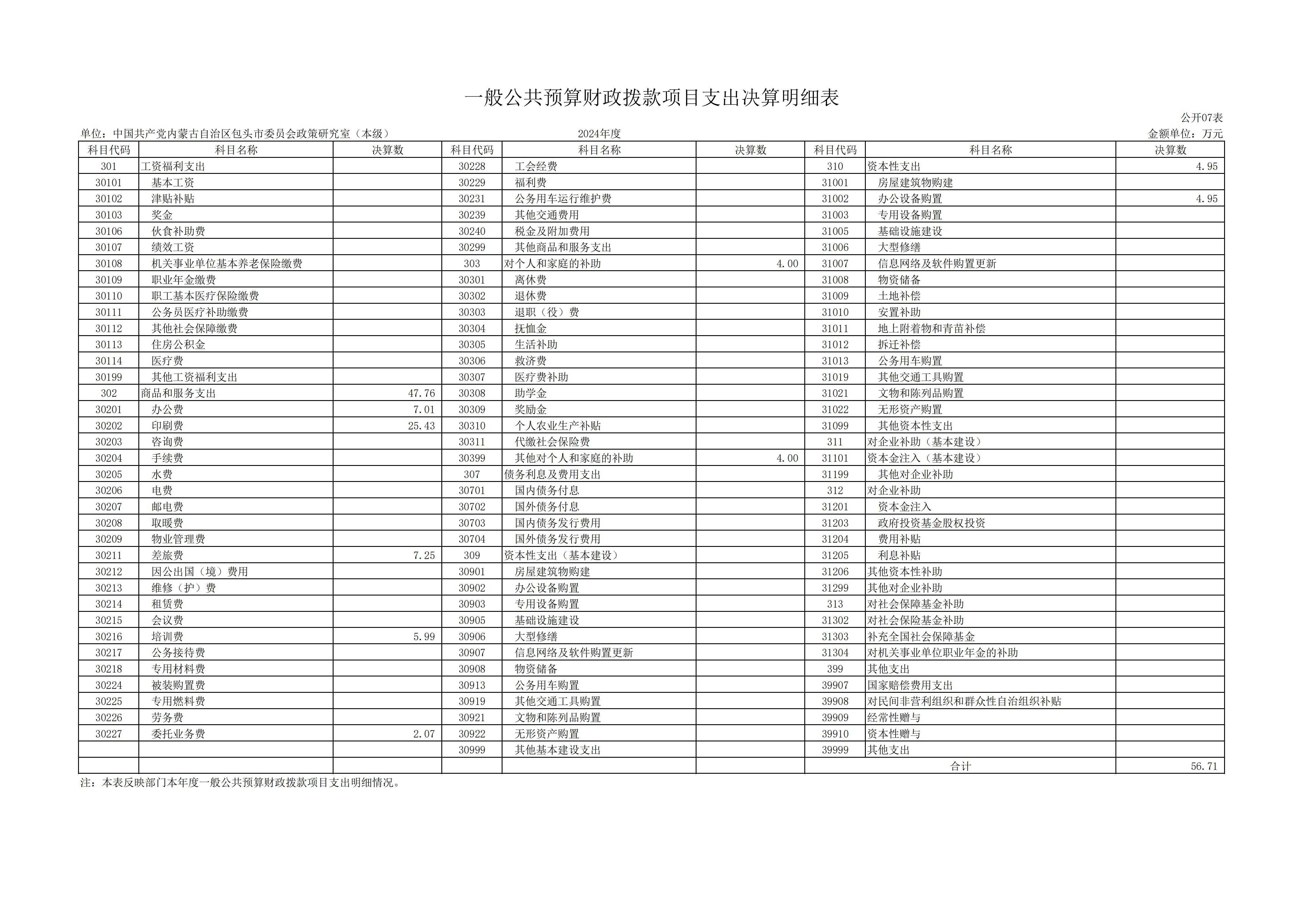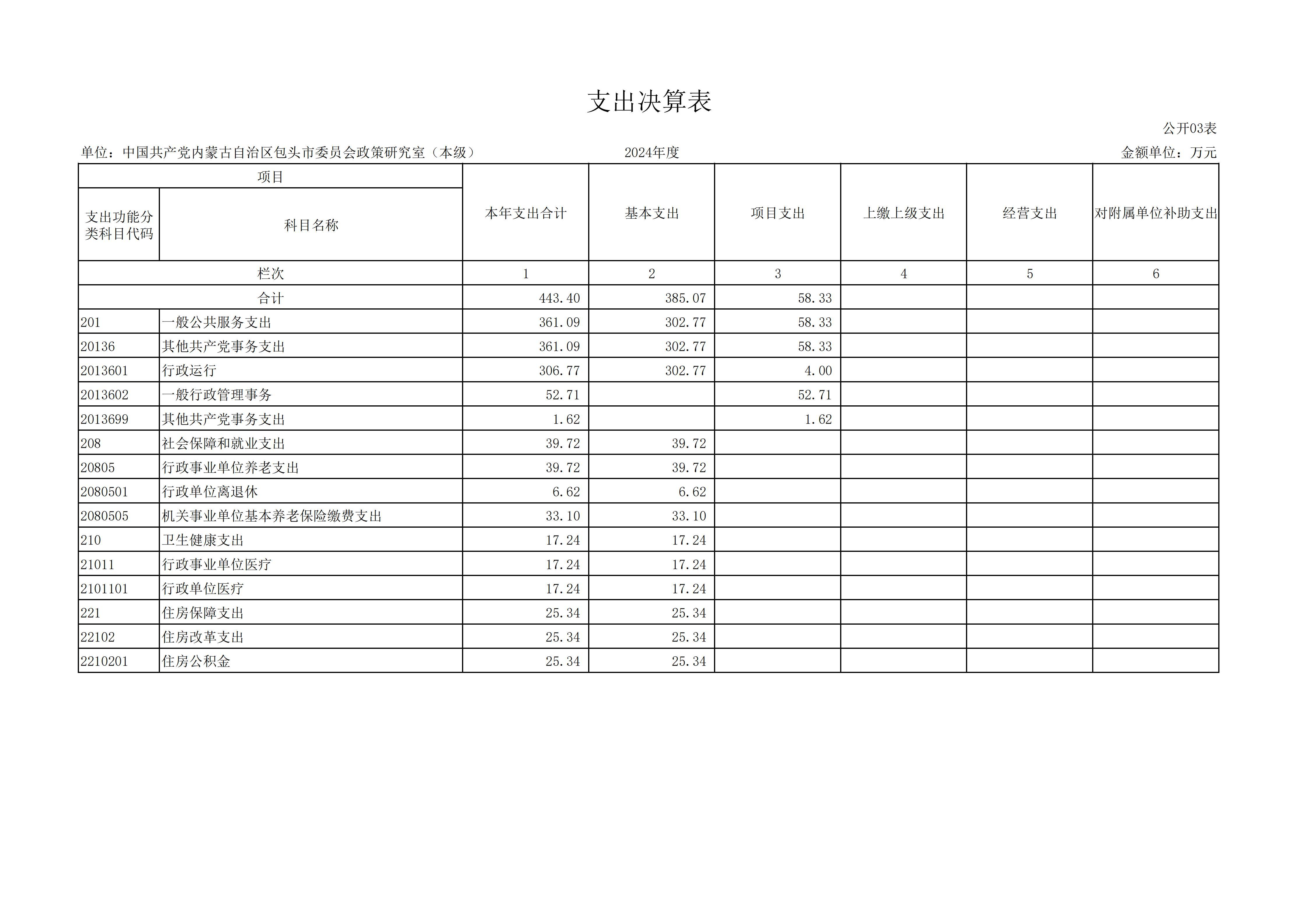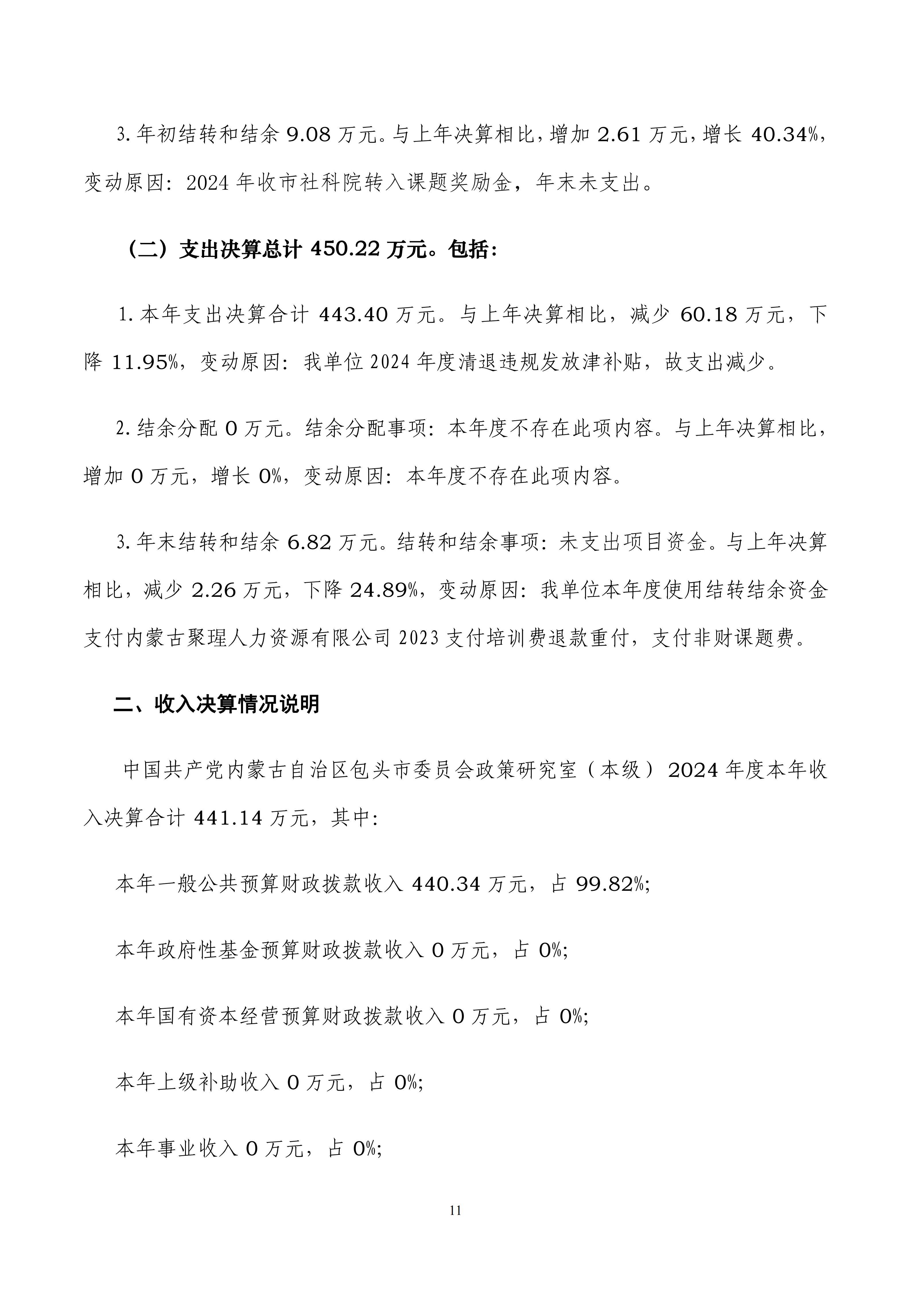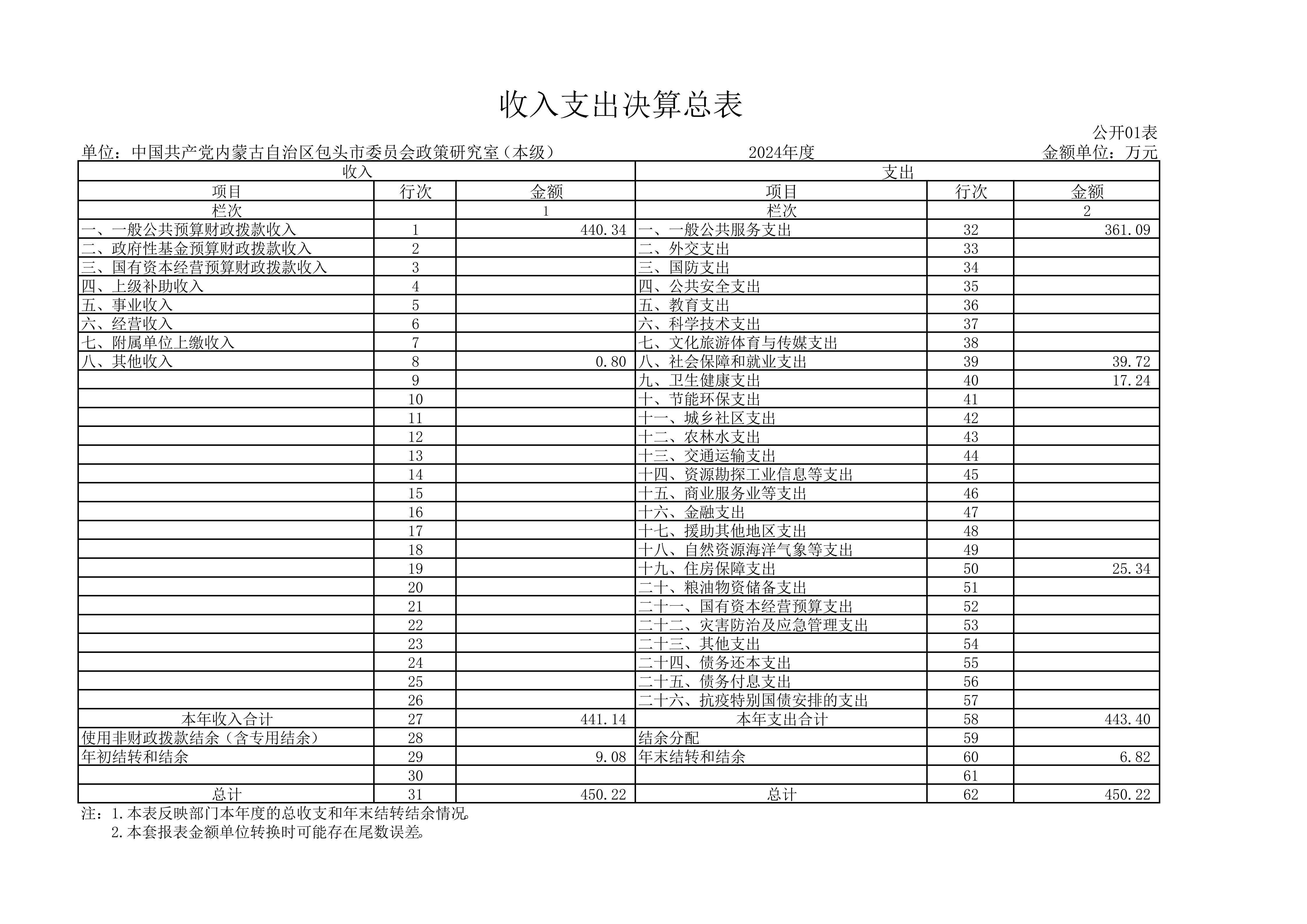 2024年度中共包头市委员会政策研究室本级决算公开