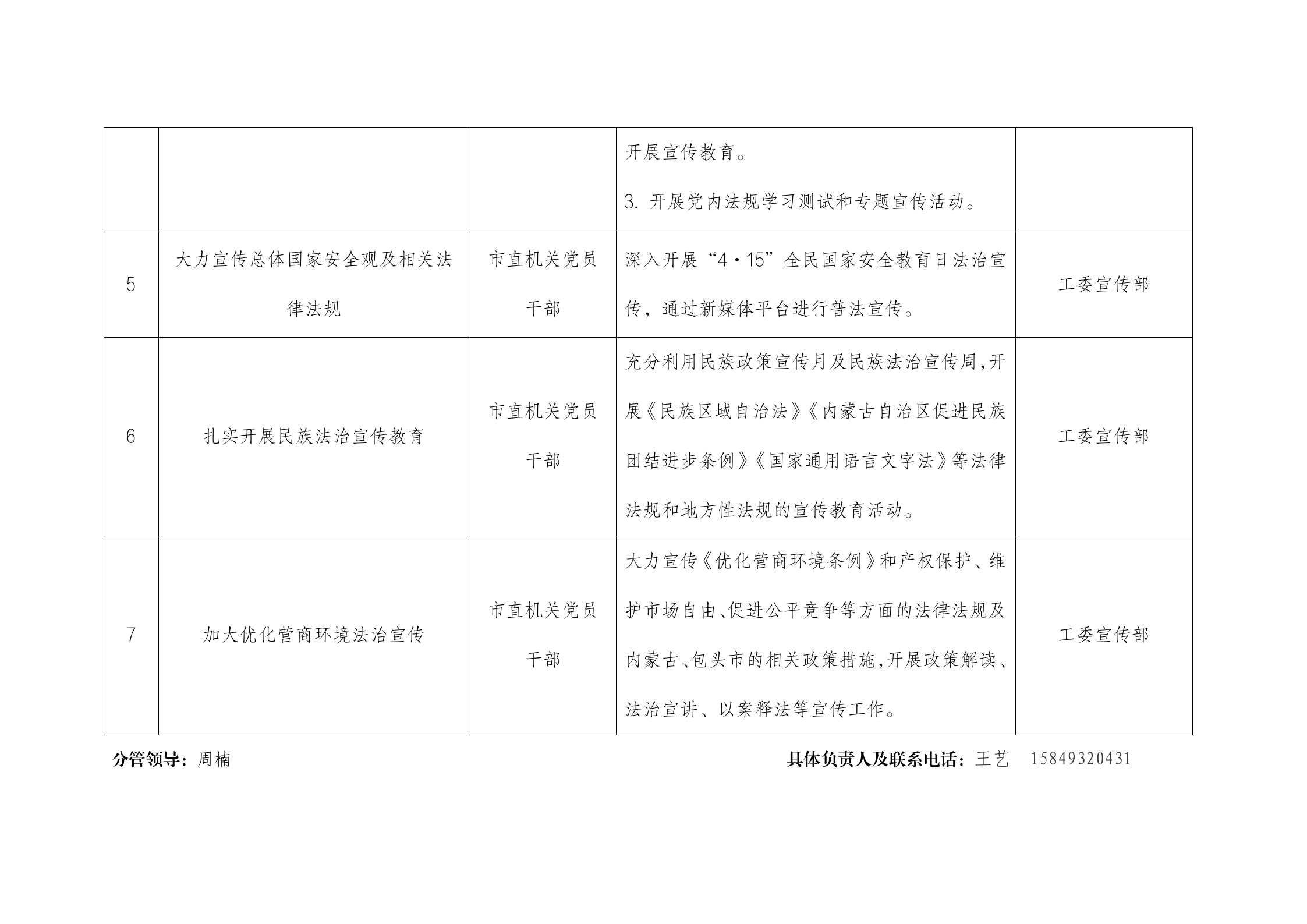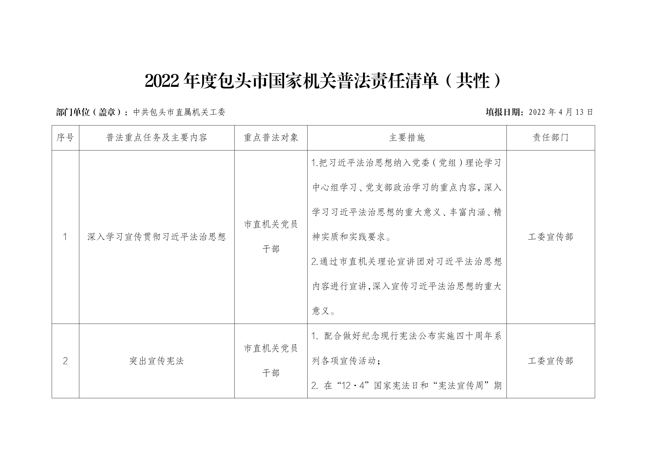 2022年度中共包头市直属机关工委普法责任清单