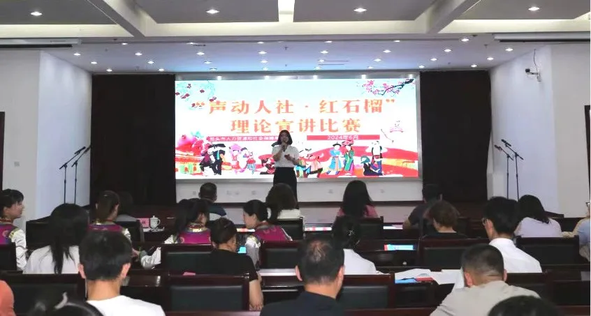 为深入学习贯彻习近平新时代中国特色社会主义思想,推动党的创新理论和“三个离不开”“四个与共” “五个认同”等理念和要求入脑入心,不断锤炼人社干部党性修养。市人社局于 6 月 7 日举办了“声动人社·红石榴”理论微宣讲比赛,局属各总支、支部组成 9 支政治素质过硬、理论功底扎实的宣讲队伍,100 余名人社干部职工到比赛现场进行了观摩学习。本次比赛特邀局四级调研员刘淑云担任评委,比赛由局机关党委主办,市人力资源服务中心承办。